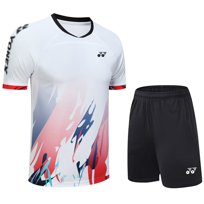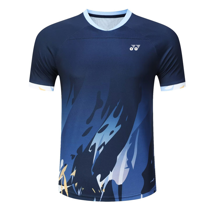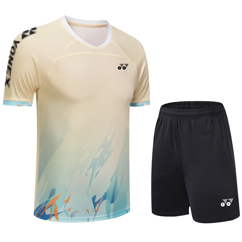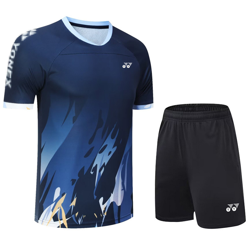 YY новая летняя тренировочная одежда для бадминтона с принтом, спортивные костюмы с короткими рукавами по индивидуальному заказу, быстросохнущая впитывающая пот футболка, шорты