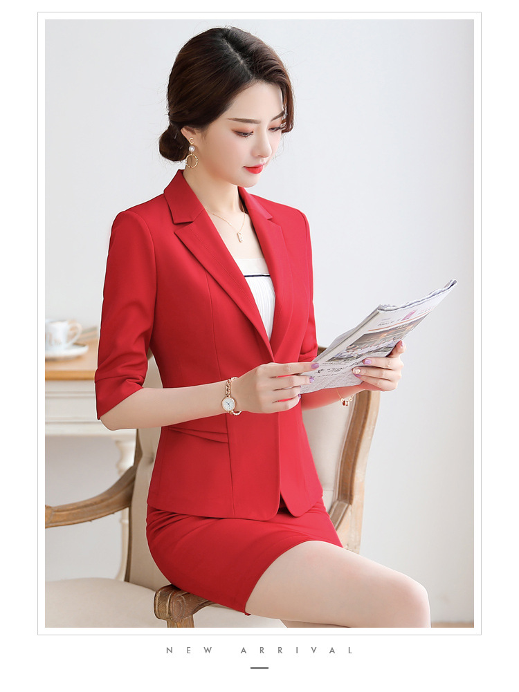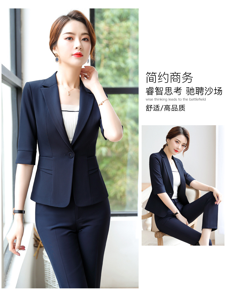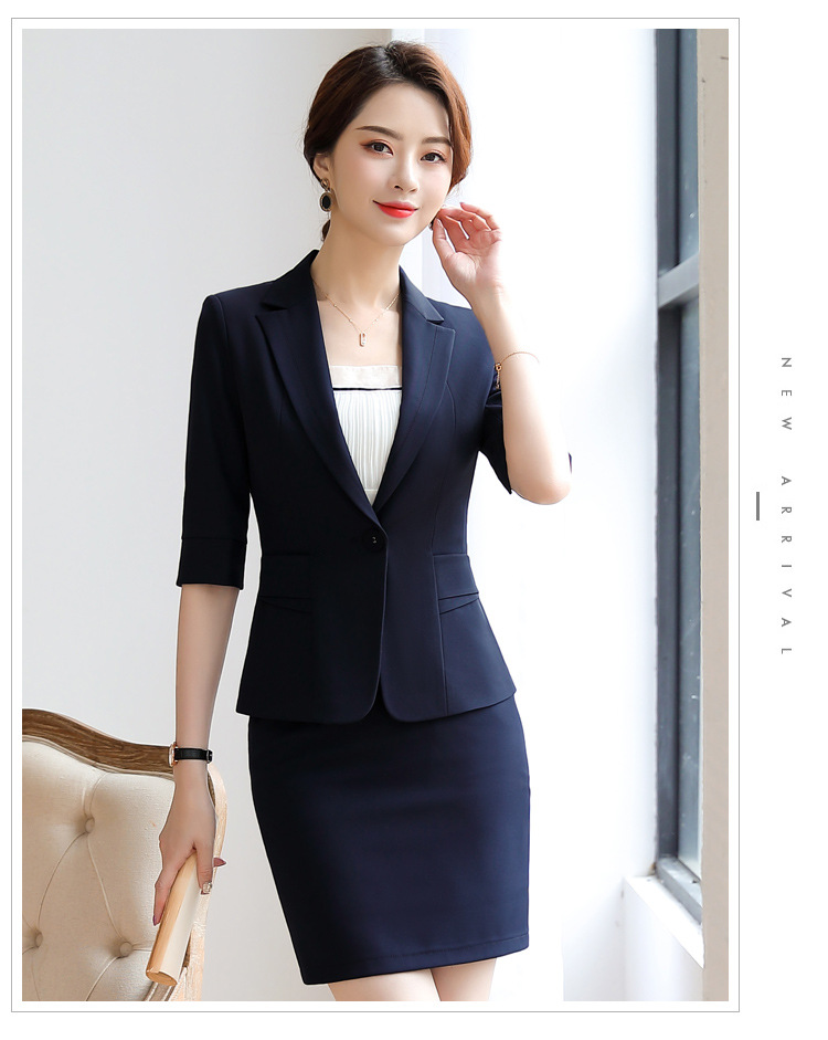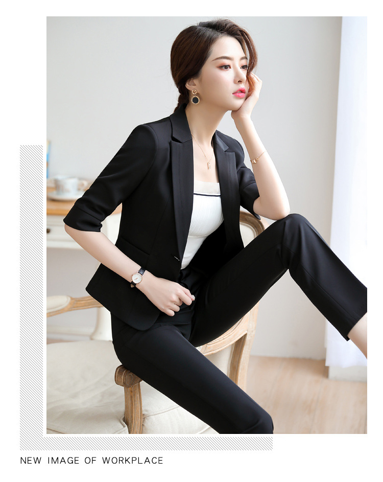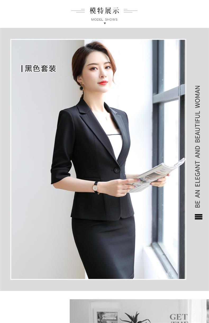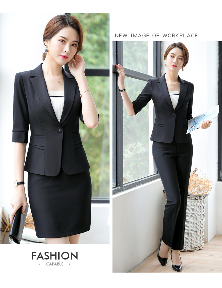 Костюм со средним рукавом, женская рабочая одежда с рукавом три четверти, летний костюм, профессиональный костюм, рабочая одежда для стойки регистрации отеля, женская черная тонкая одежда