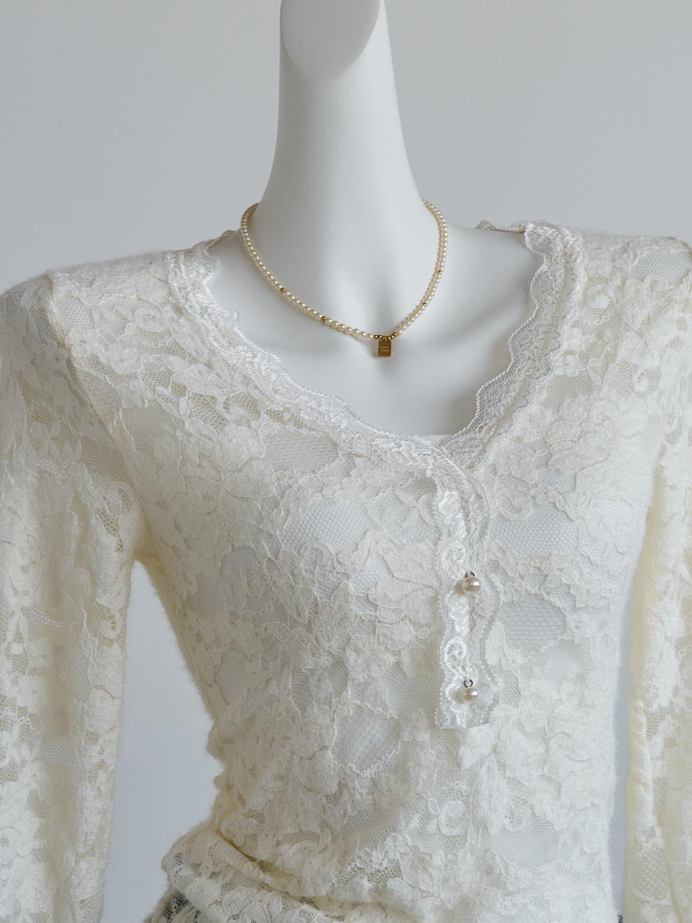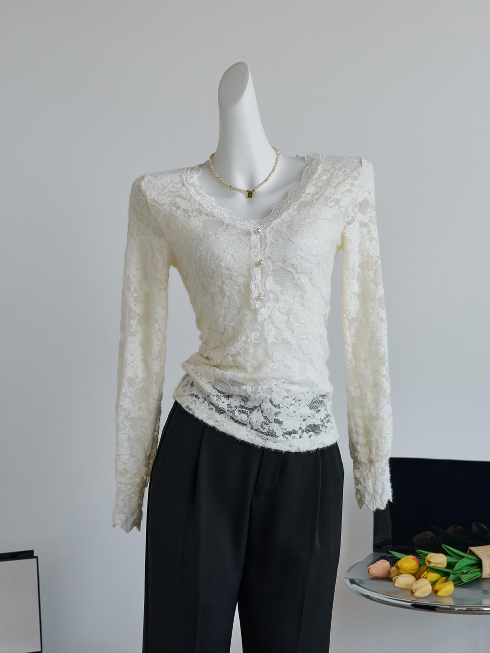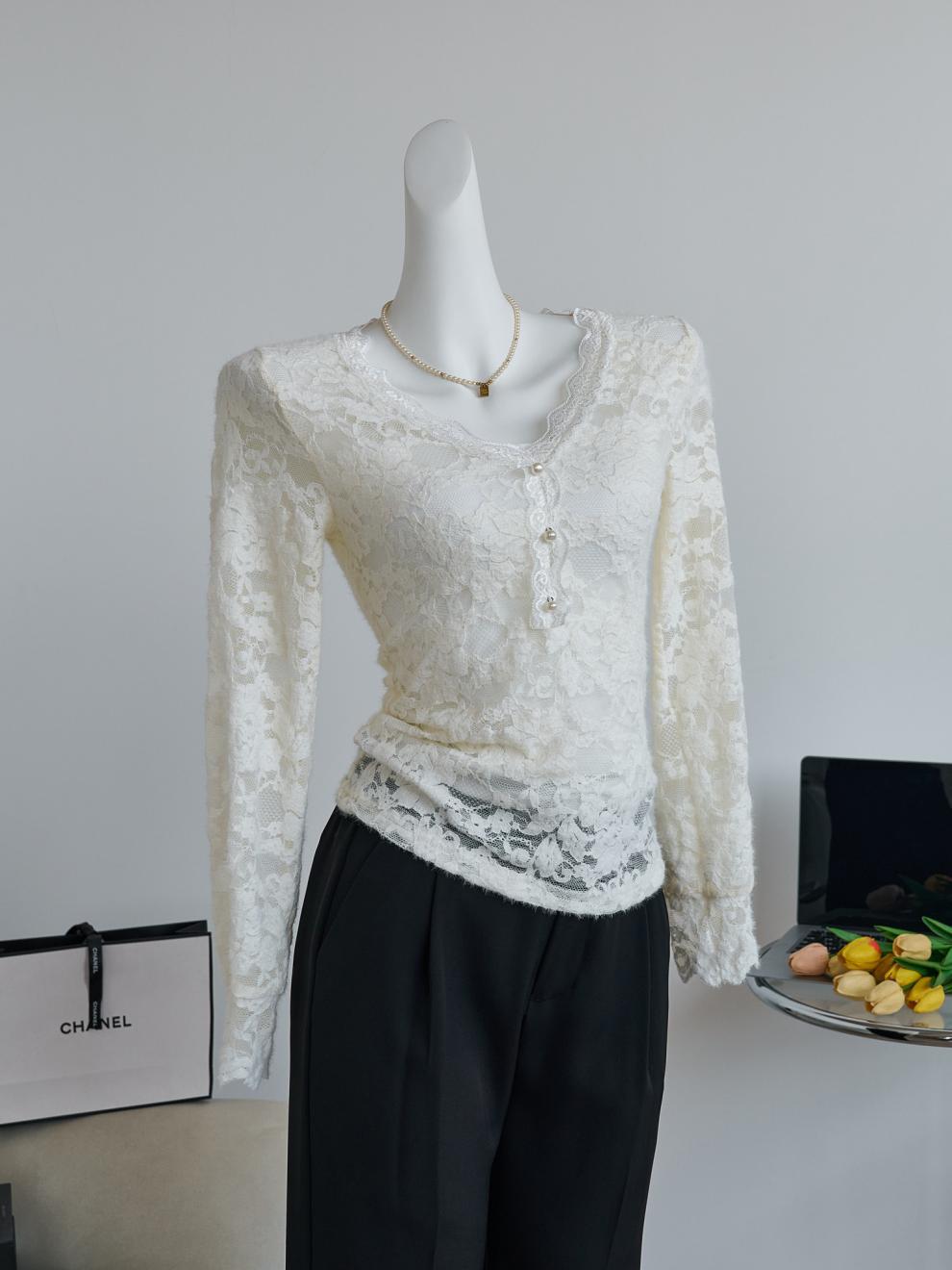 G6N весенняя рубашка во французском стиле, уникальная, шикарная, модная, крутая, доступная, роскошная, высококачественная белая кружевная рубашка с v-образным вырезом для женщин