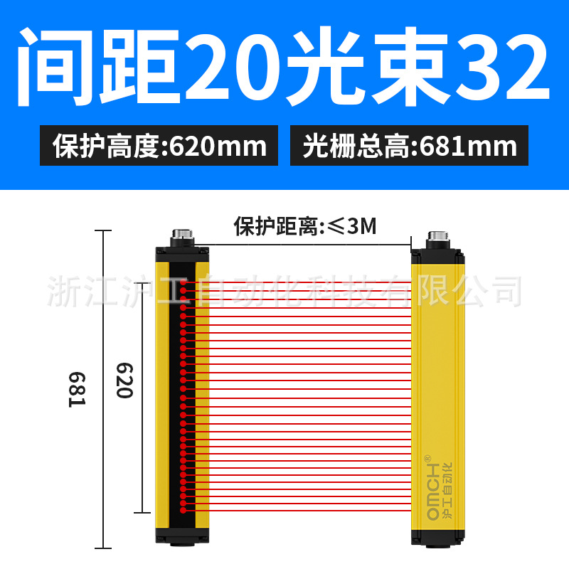 Датчик оптической решетки безопасности Hugong Optoelectronics, световая завеса, устройство защиты от ударов, инфракрасный датчик сквозного луча, детектор