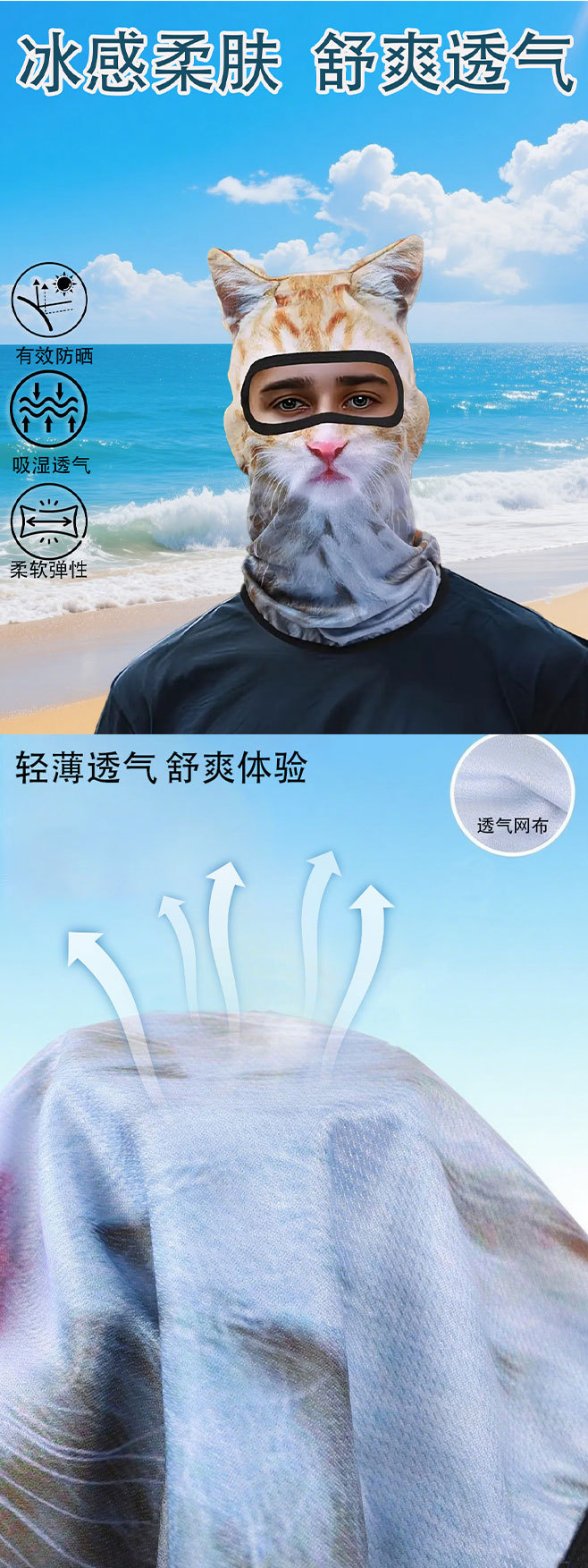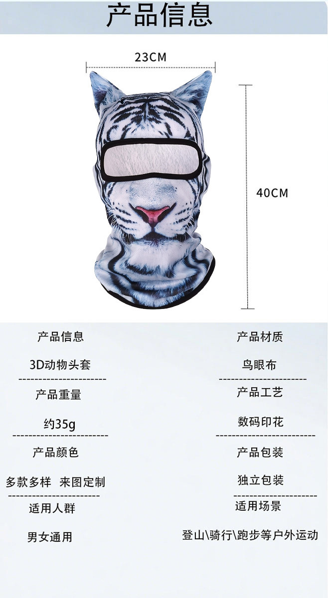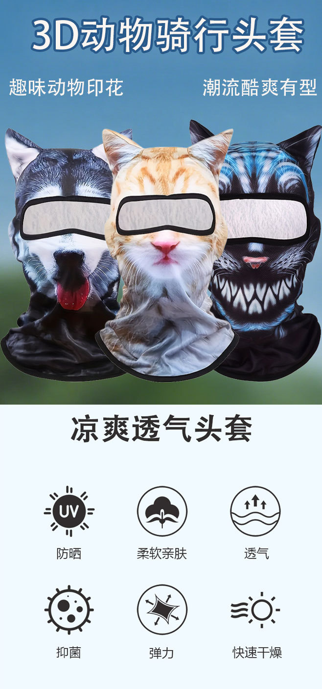 Уличная солнцезащитная маска с 3D животным узором, забавная маска, спортивная велосипедная маска для защиты лица, защита шеи, пылезащитная солнцезащитная шляпа на голову