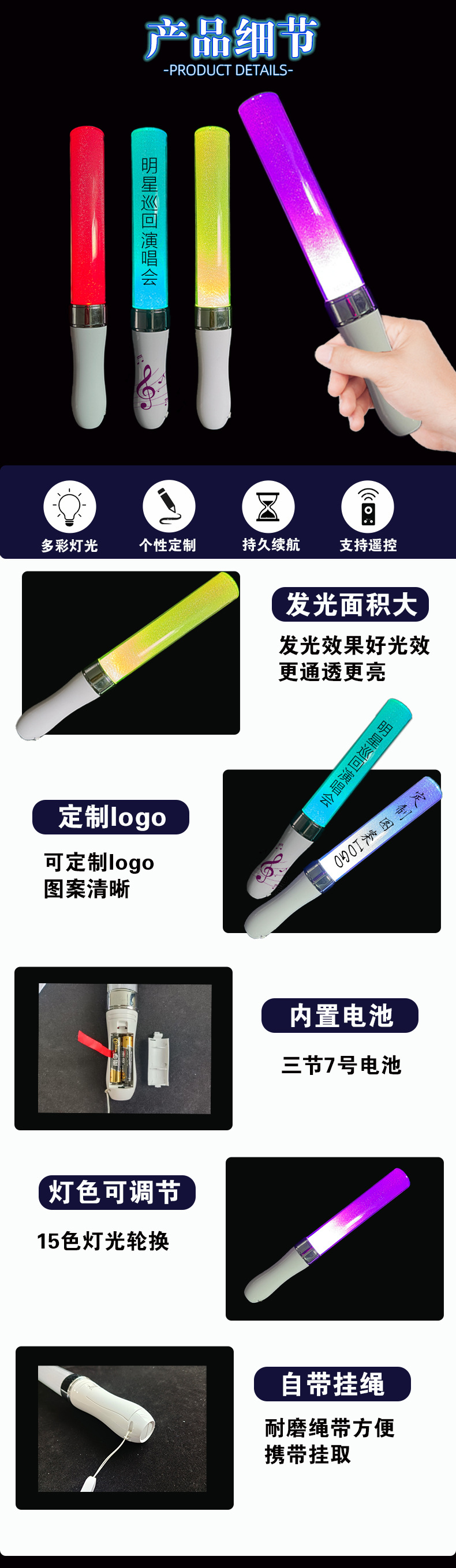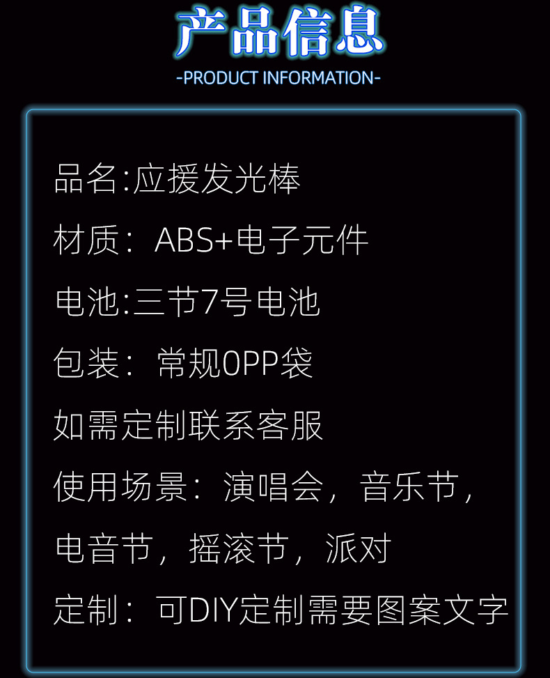 品名:应援荧光棒/发光棒/LED荧光棒