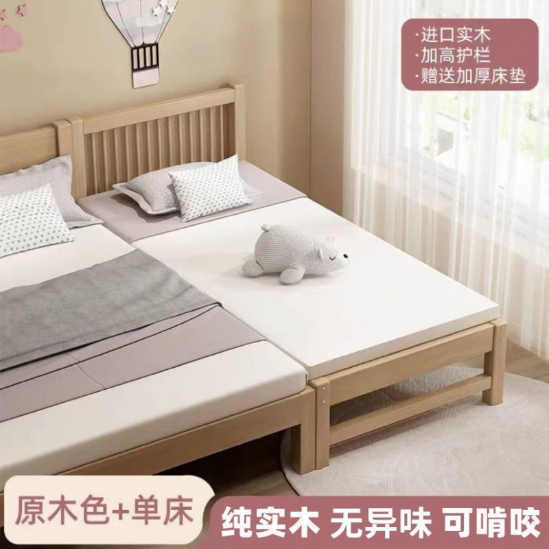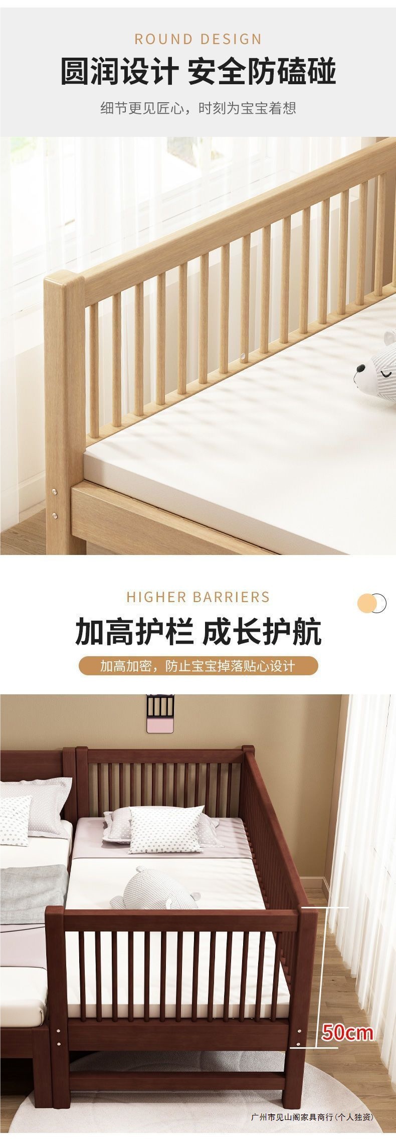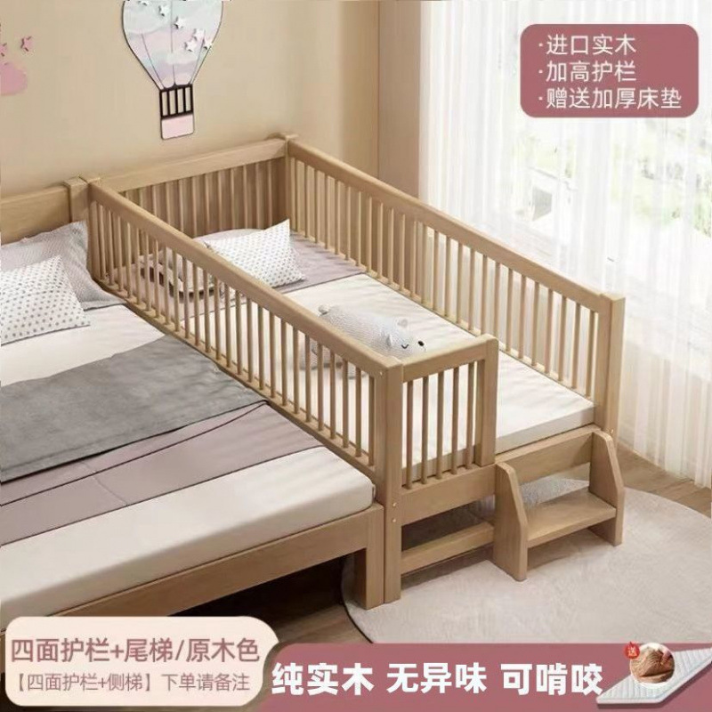 Детская кровать из орехового дерева с удлиненным краем и широкими перилами для мальчиков и девочек, большая кровать с соединенным краем, из чистого массива дерева.