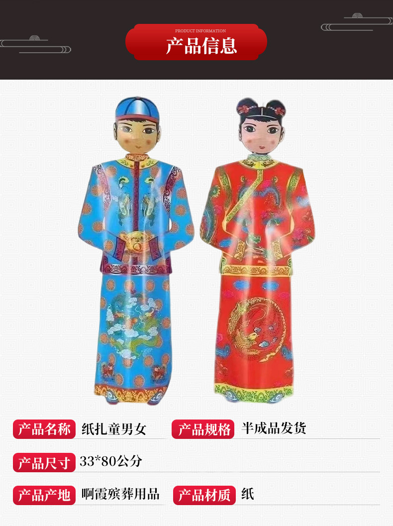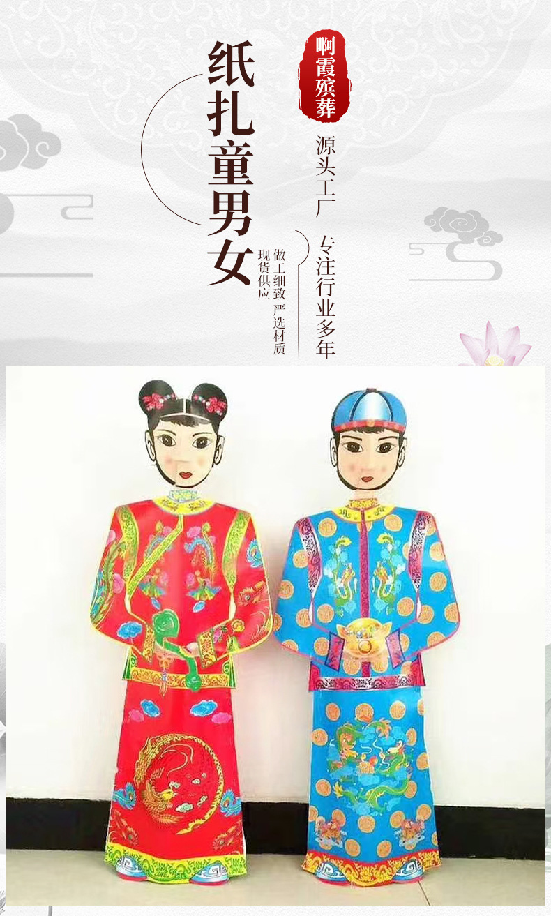 Оптовая продажа трехмерных бумажных фигурок для детей, мальчиков и девочек для похоронных принадлежностей, бумажных фигурок для мальчиков и девочек, золотого мальчика и нефритовой девочки для жертвоприношений и похорон.