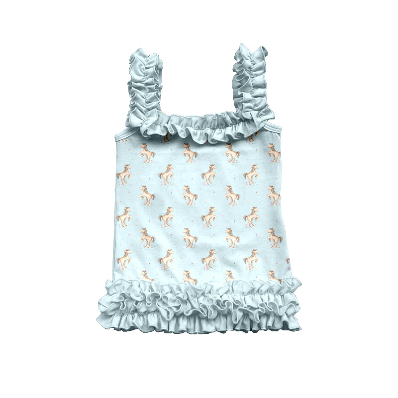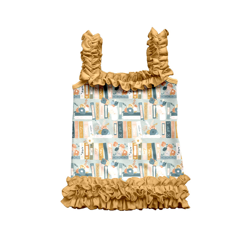 Оптовая продажа кросс-бордерных платьев для девочек с принтом, рюшами на бретелях + милой и уникальной юбкой.