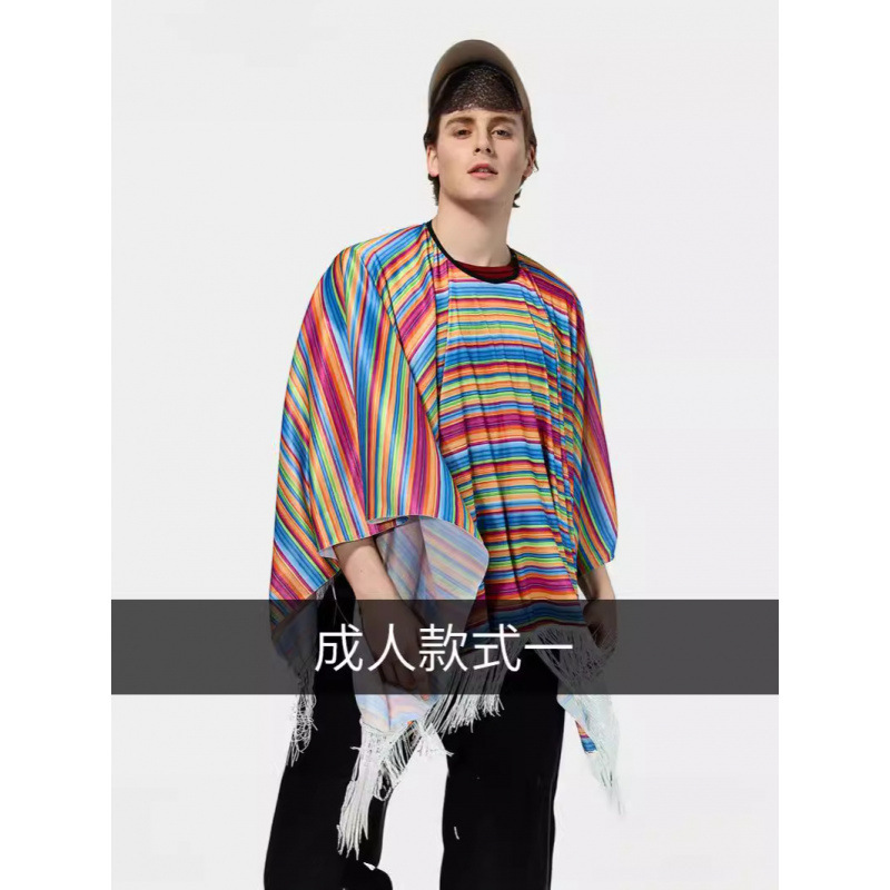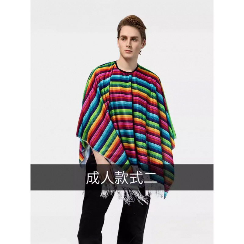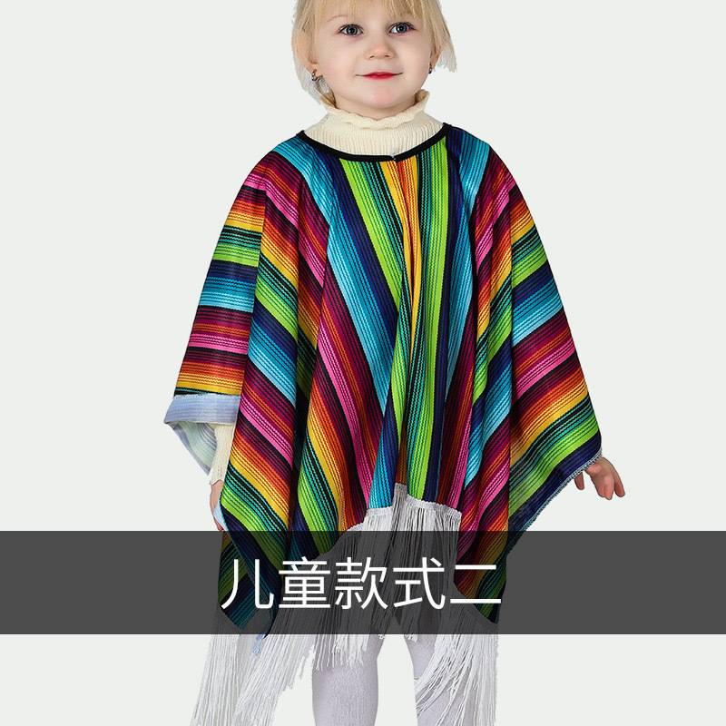 Детский мексиканский костюм на Хэллоуин, мексиканский этнический плащ, мексиканский плащ для взрослых, мексиканская шаль