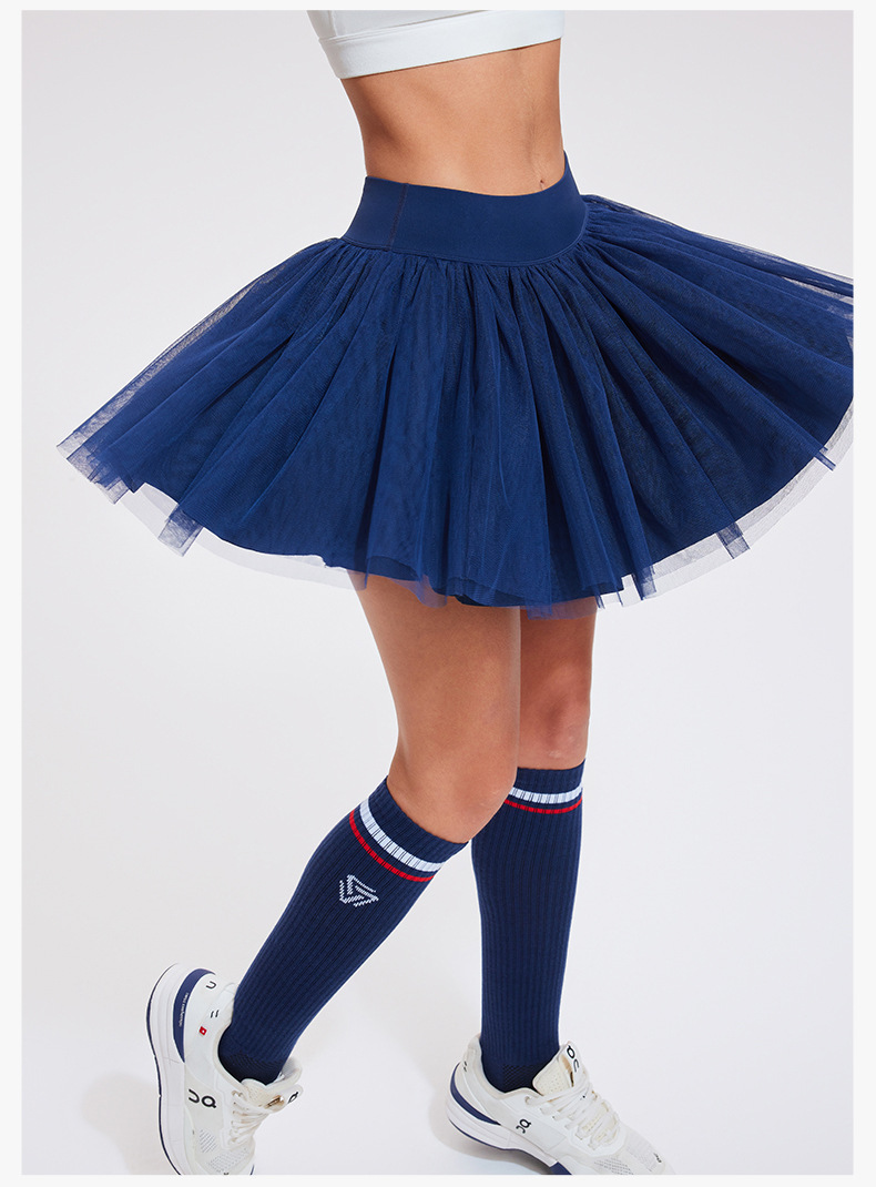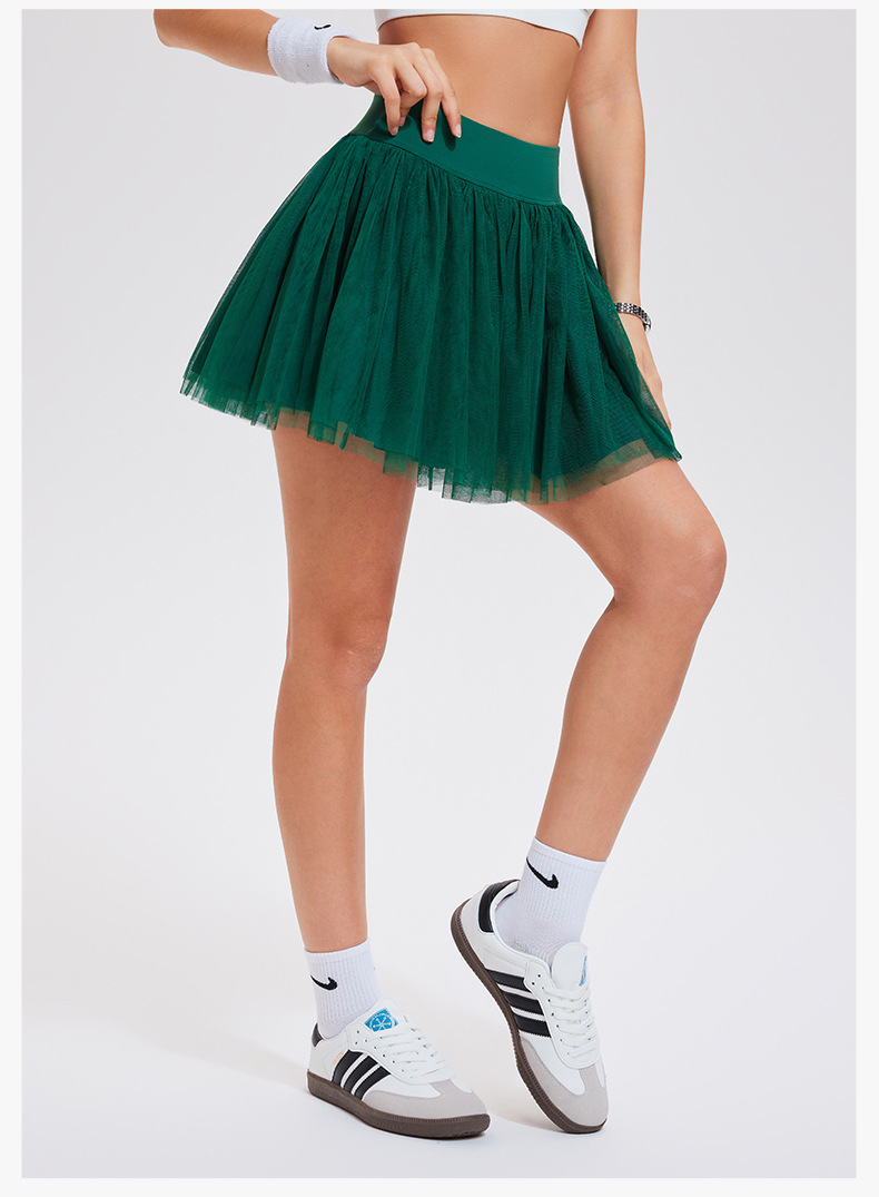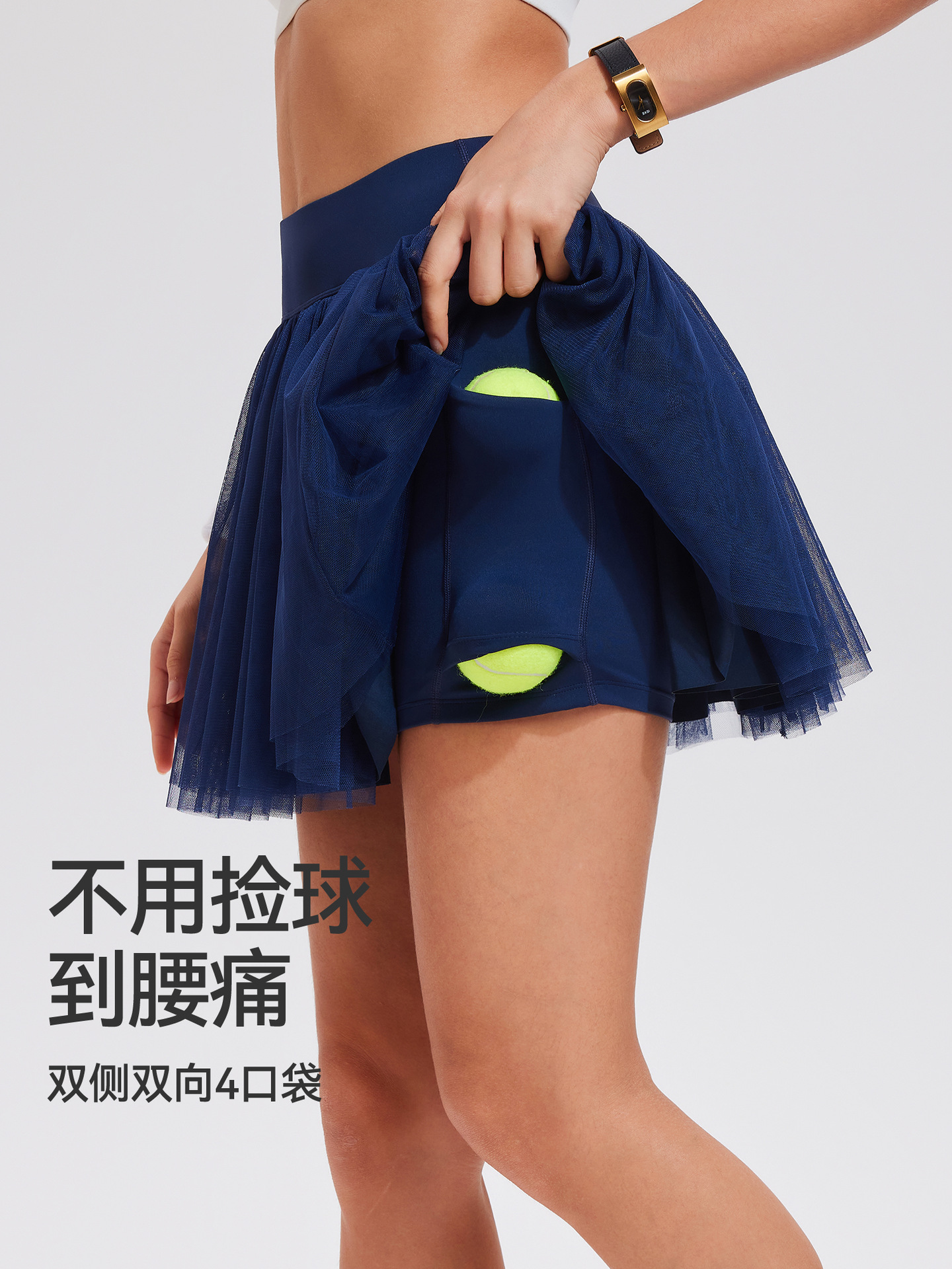 Новая трансграничная теннисная юбка, женская двухслойная сетчатая пышная юбка для бадминтона, антиэкспозиционная юбка для бега, фитнеса, спортивная юбка