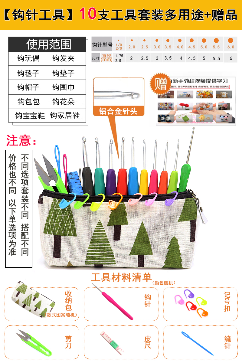 2-6.0) Полный набор инструментов для вязания крючком 10 шт.; Набор из 10 предметов + нить 8 цветов.; 2-5.0) Инструменты для вязания крючком 5 шт.; Набор из 5 предметов + нитки 8 цветов.; Набор из 5 предметов + 1 цветная нить.; 2-4.0) Набор крючком 5 шт.; Старый двусторонний крючок 1/0 2/0 (без ножниц и рулетки) 1 шт. (без сумки); 2-3,0) 3 штуки вязальных крючков из шерсти.; 2-3.0) Вязать крючком 2 шт.; 2 комплекта + 8 цветных ниток.; 2 комплекта + 3 цветные нитки; 2 комплекта + 1 цветная нить