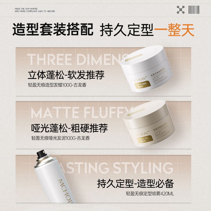[Бесплатная расческа для объемной укладки] Лак для укладки + грязь для волос в тон + воск для укладки волос; [Укладка] Лак для укладки + грязь для волос той же текстуры.; [Укладка] Лак для укладки волос + Воск для укладки волос 100г; [Формирование текстуры] Матовая глина для укладки 100 г*2; Воск для волос Magic Styling【100г】; [Рекомендуется] Глина для волос Magic Fragrance 100 г; Воск для укладки волос 100г*2