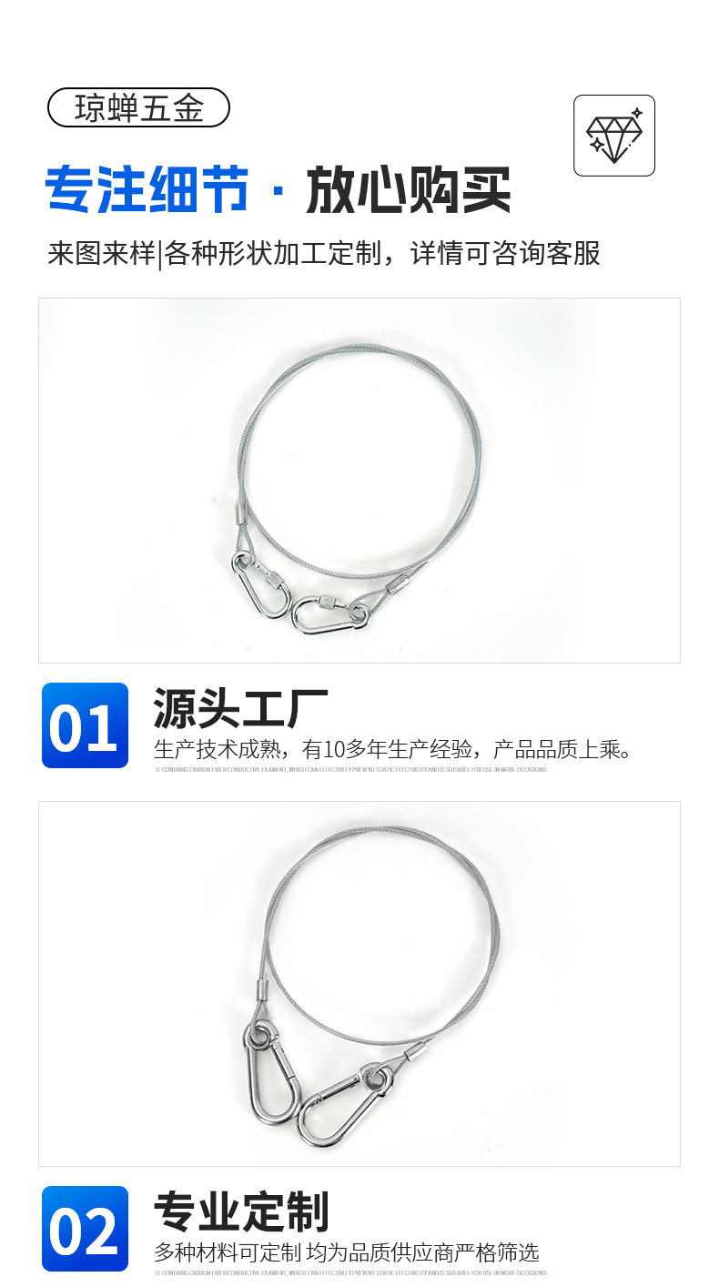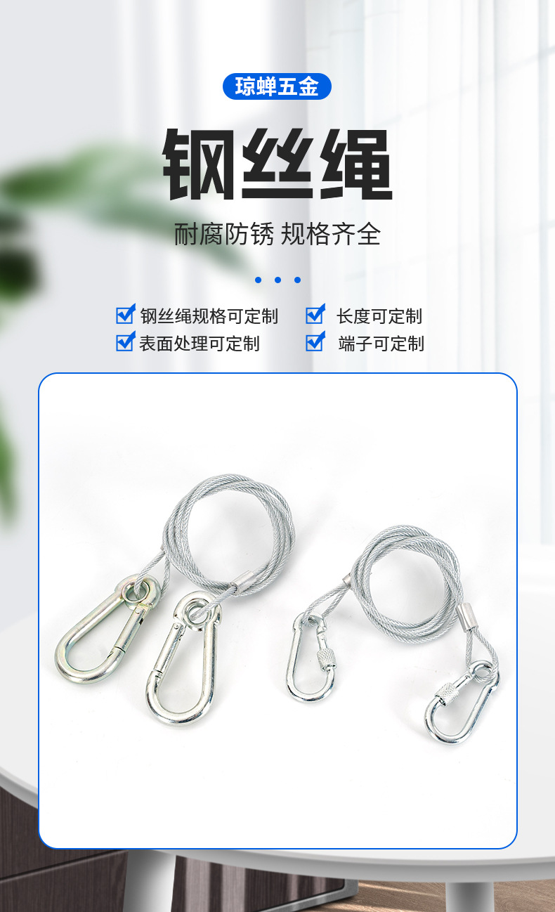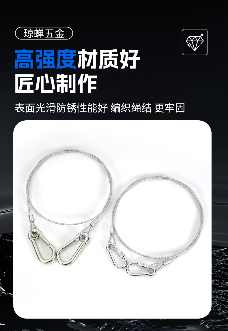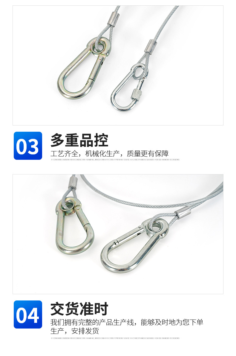 Стальной страховочный трос из нержавеющей стали 304; Черный стальной трос с D-образным карабином размера 5.; Стальной трос №5 с гаечным карабином; № 6 предохранительная пряжка с тросом в резиновой оплетке; Карабин №7 с красным тросом