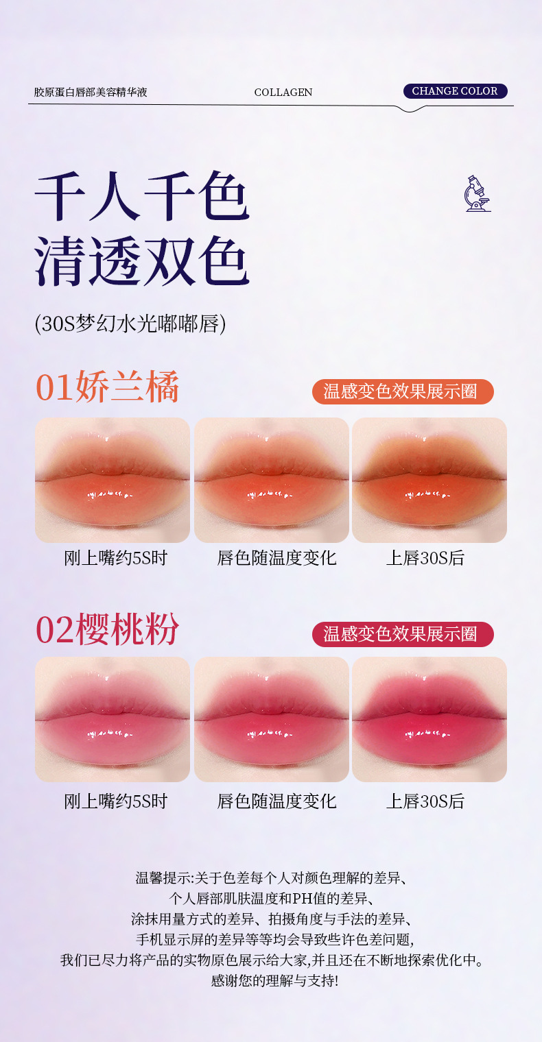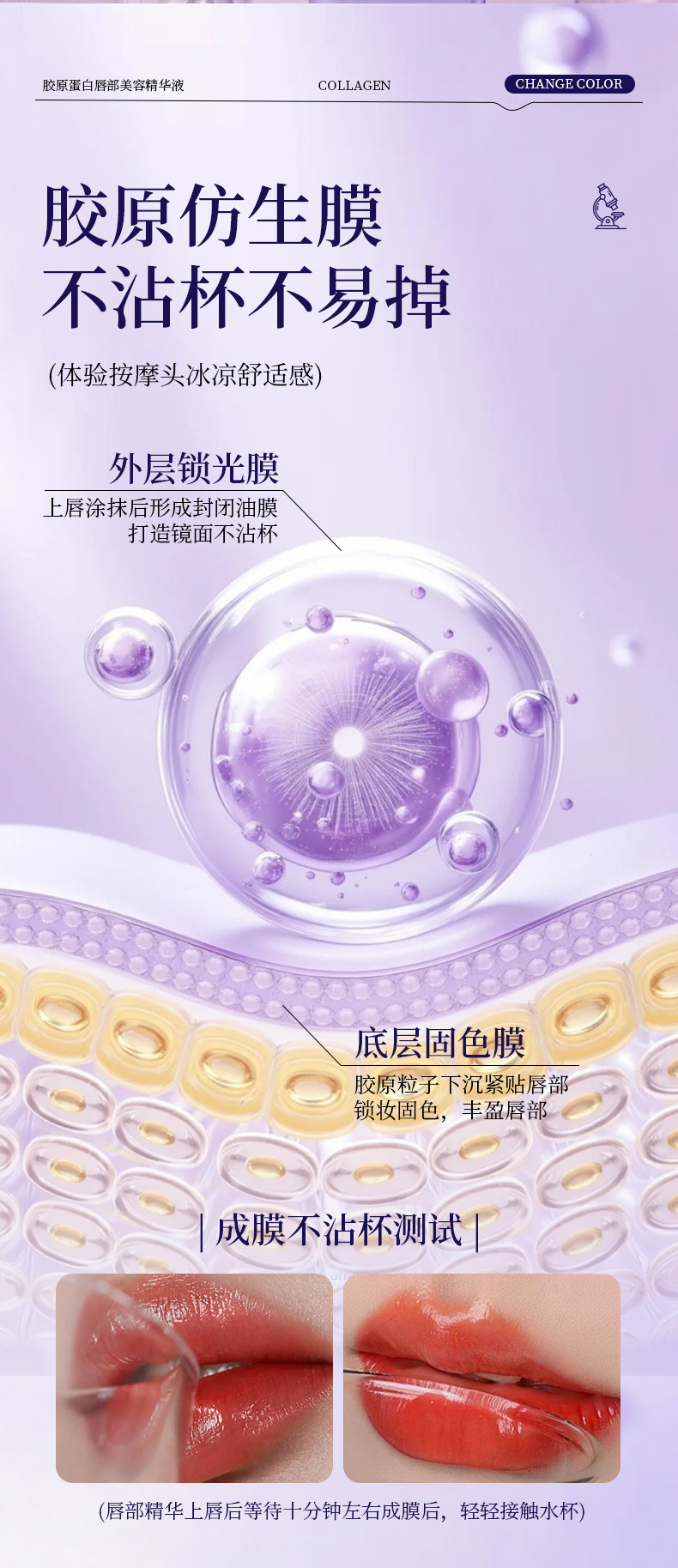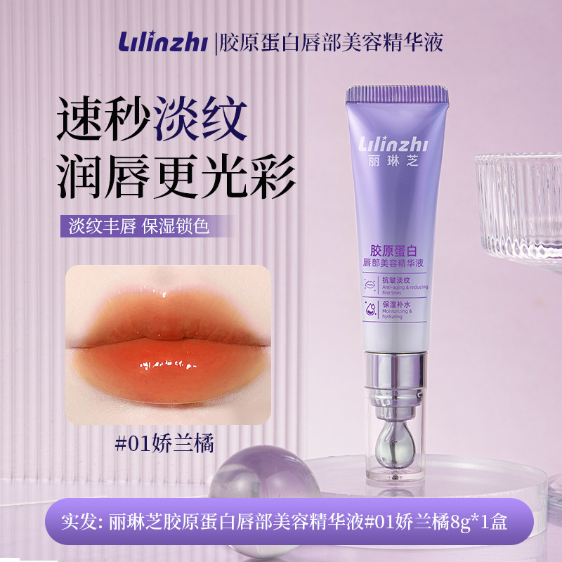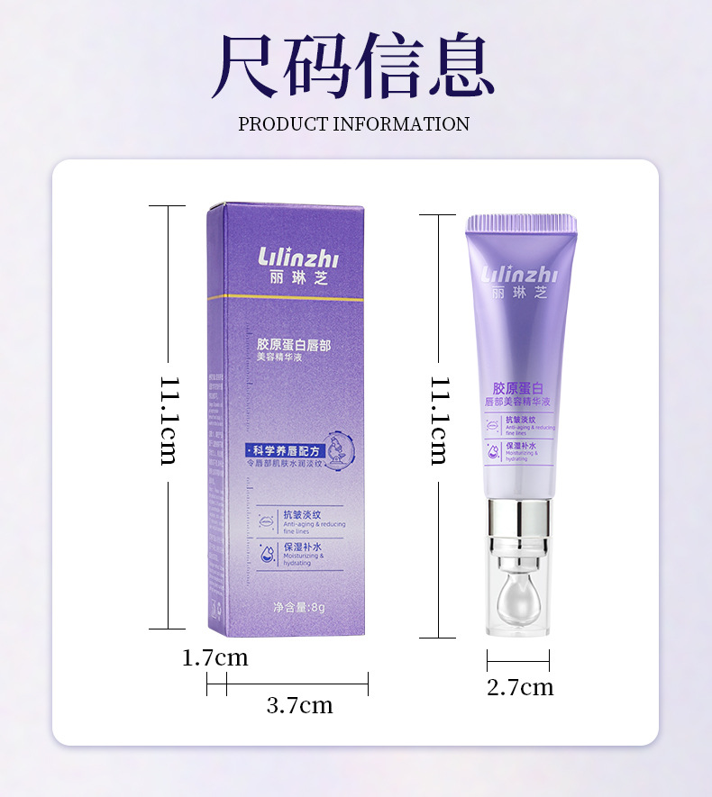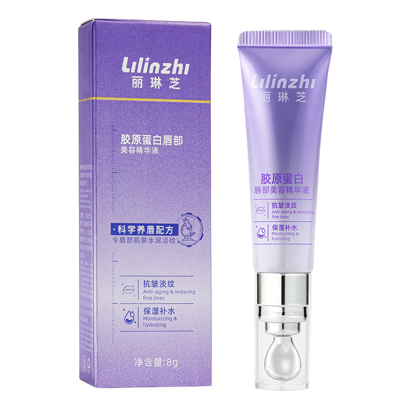 Lilinzhi Collagen Lip Beauty Essence Увлажняющая, увлажняющая и исчезающая линия губ Увлажняющая и теплая эссенция для губ