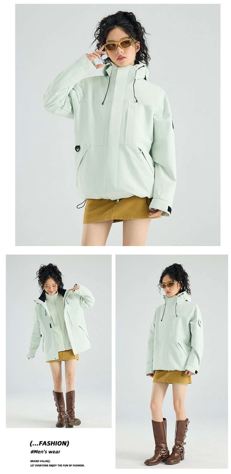 浅汐绿【三合一摇粒绒】; 白藤紫【三合一摇粒绒】; 枫叶黄【三合一摇粒绒】; 黑色【三合一摇粒绒】; 玫红【三合一摇粒绒】; 月光蓝【三合一摇粒绒】; 青果绿【三合一摇粒绒】; 木黛粉【三合一摇粒绒】; 尺码表