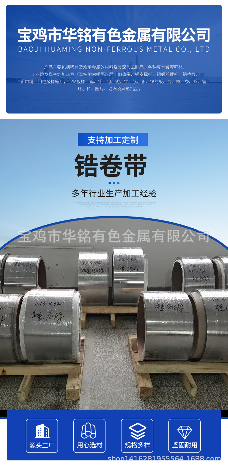 Завод-изготовитель использует циркониевые рулоны для химического оборудования и прецизионных приборов. Сырье полностью соответствует спецификациям и может быть нарезано в виде лент из циркониевой фольги.