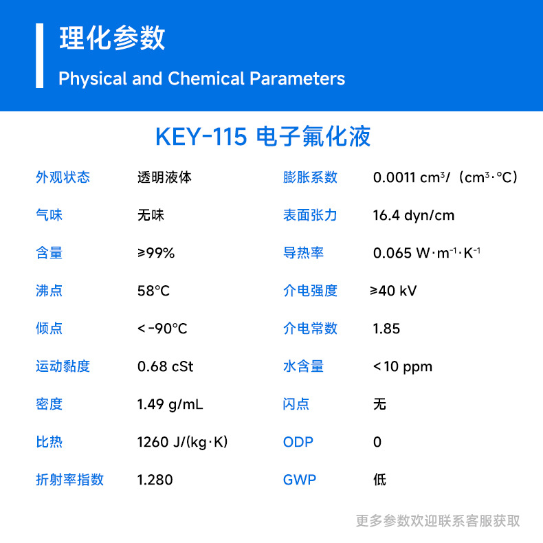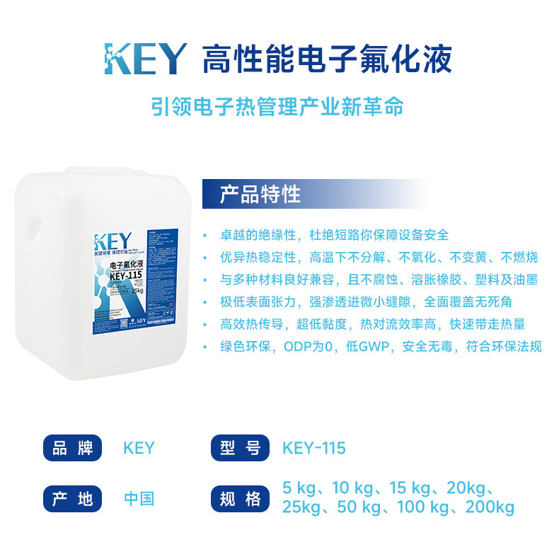 KEY-115 Электронная фторидная жидкость — это высокостабильная фторполимерная жидкость с отличной теплопроводностью.