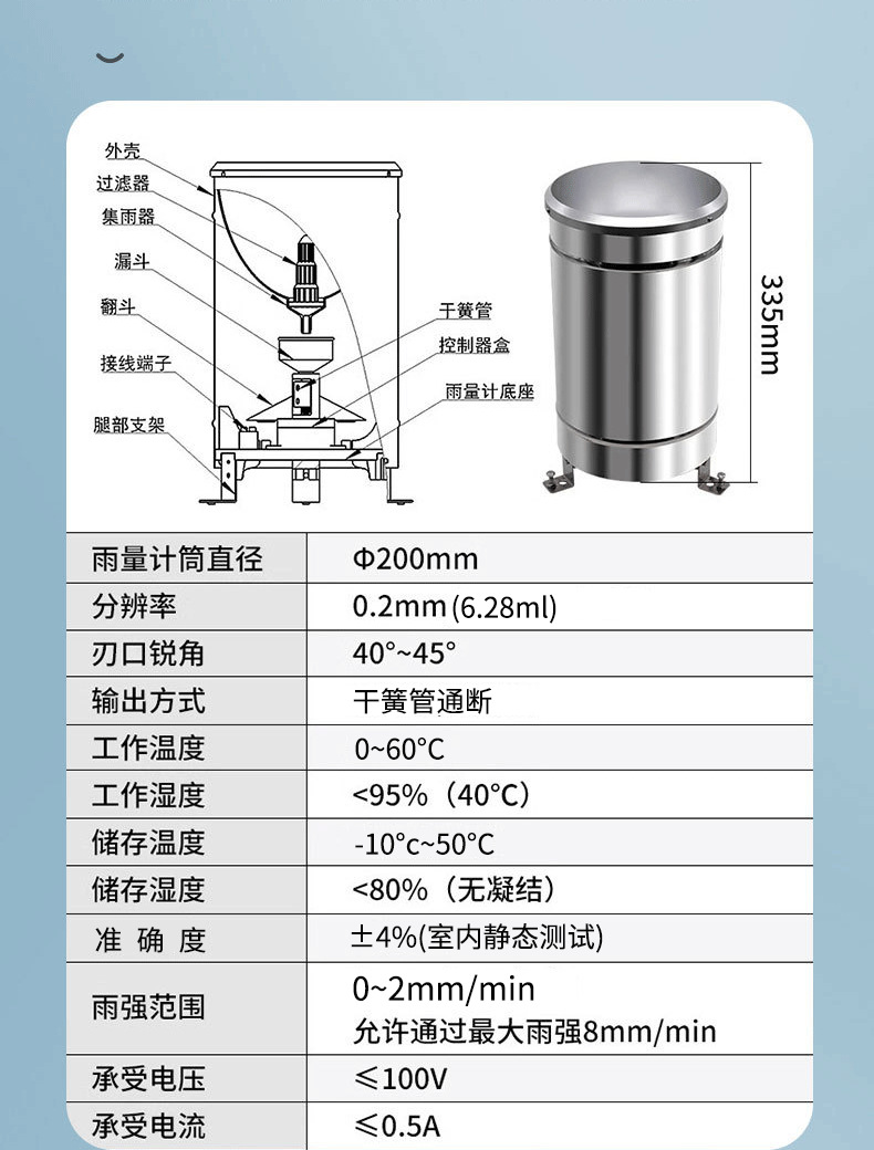 Дождемер из нержавеющей стали с опрокидывающимся ведром, датчик дождемера, мониторинговая станция, автоматическая сигнализация, фильтр, калибровка уровня бочки