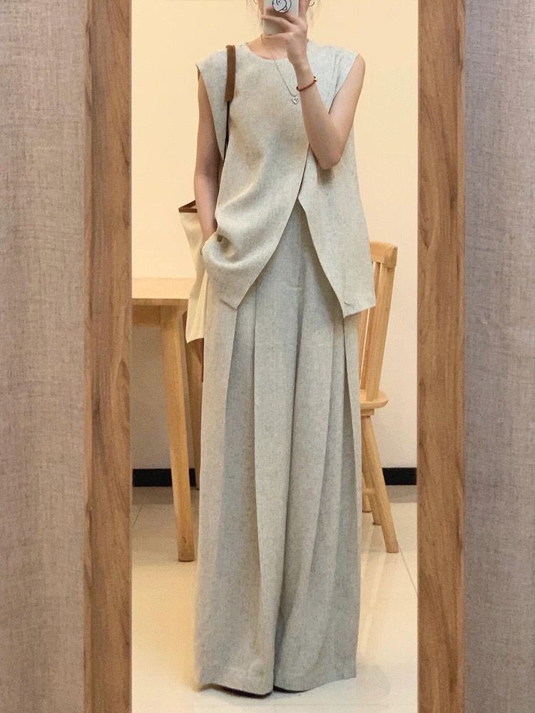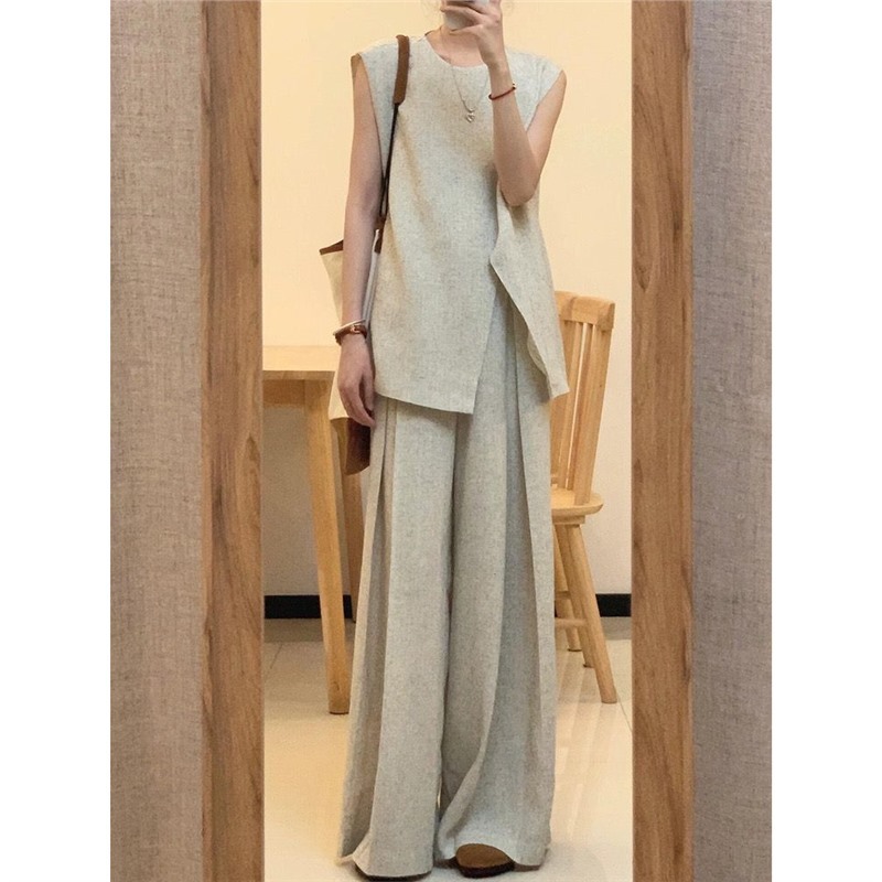 Топы, модные костюмы, женская летняя одежда, полный комплект элитных и элегантных повседневных широких брюк, комплект из двух предметов.