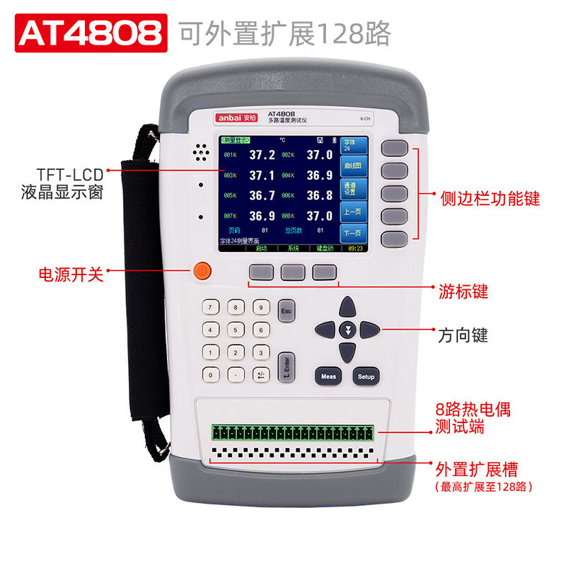 Ручной многоканальный тестер температуры Amber Instruments AT4808, расширяемый на 128 каналов