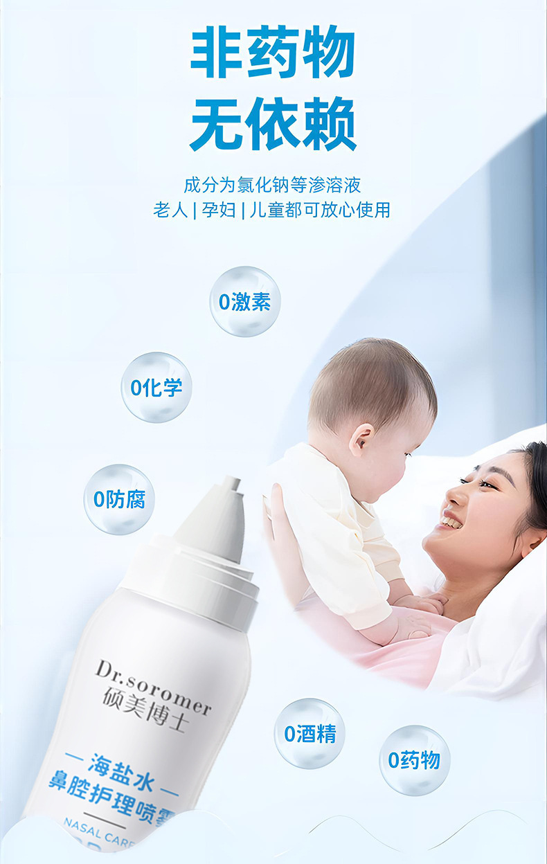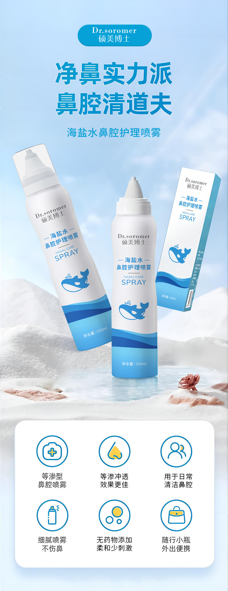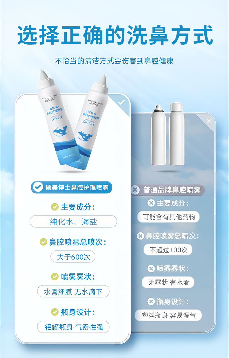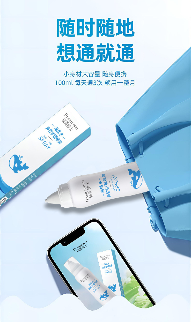 Спрей для ухода за носом с морской солью Dr. Shuomei мягко очищает и снимает сухость в носовых проходах, удобный и портативный спрей.