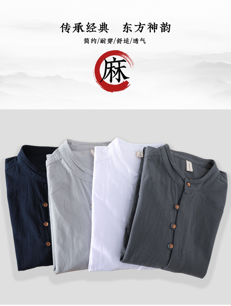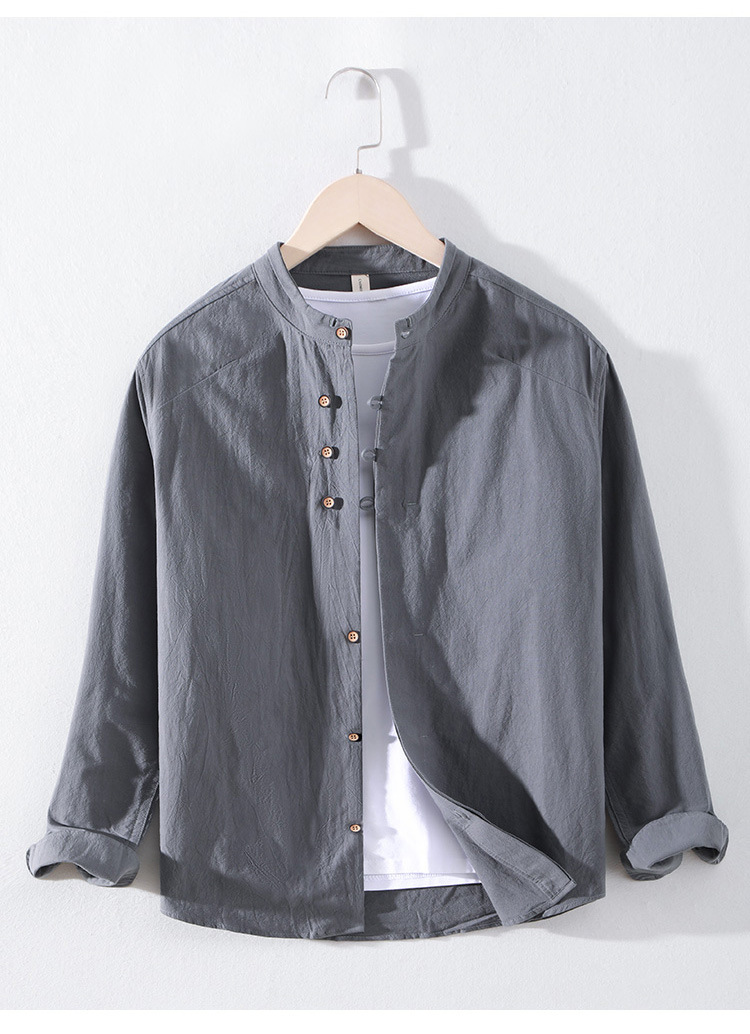 Мужская льняная рубашка с длинными рукавами и воротником-стойкой европейского размера для внешней торговли Liangxiao - эта ссылка не должна быть принята всерьез.