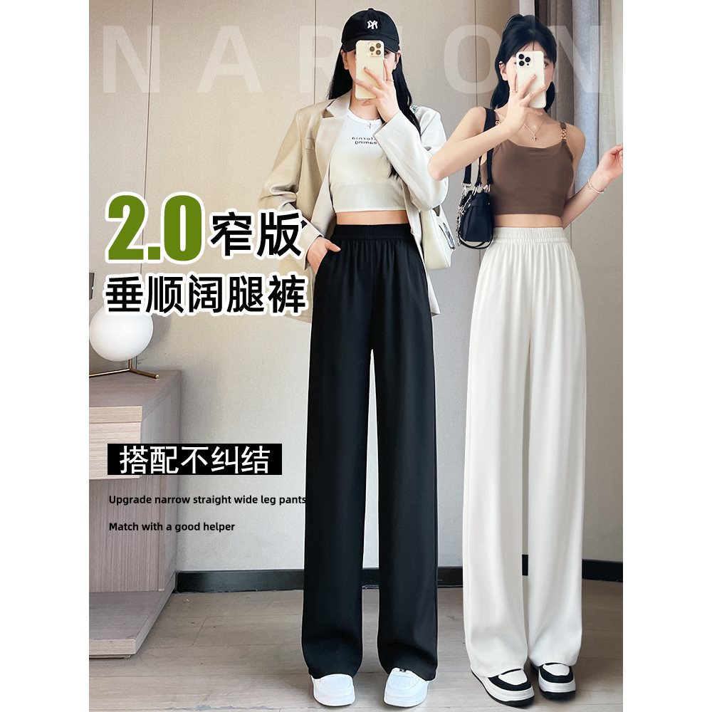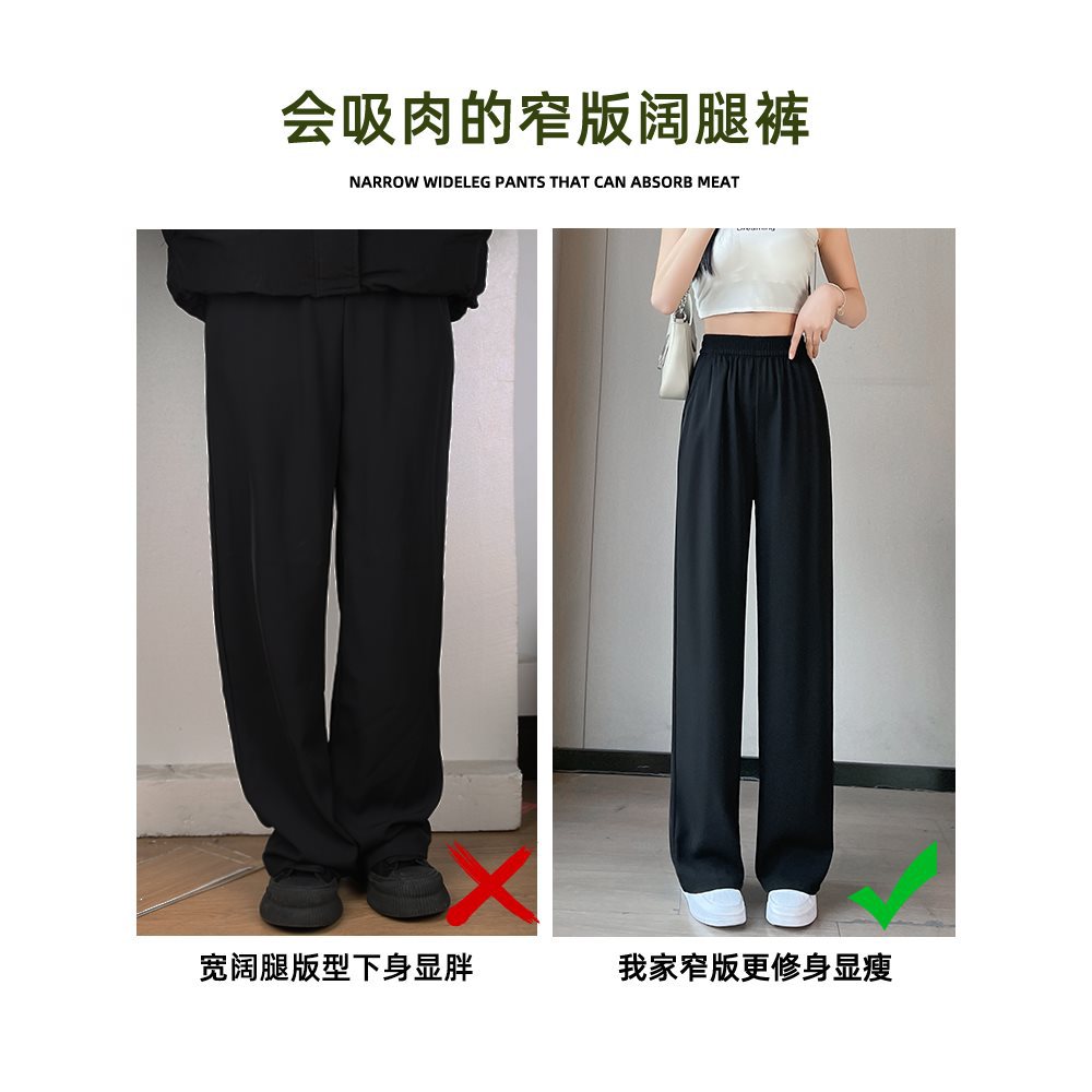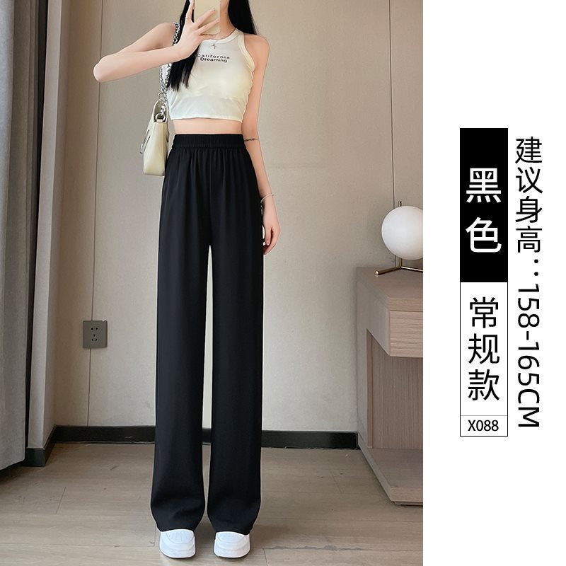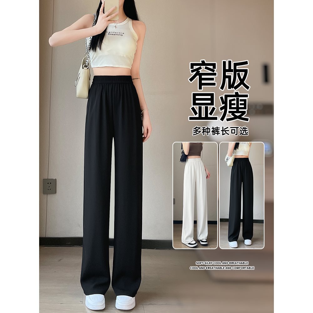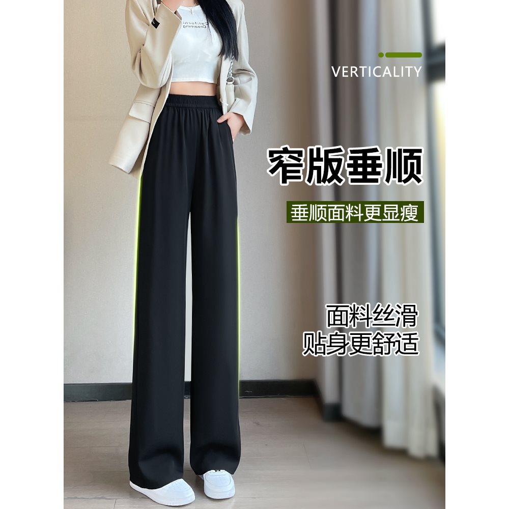 Широкие брюки из ледяного шелка для женщин, летние тонкие брюки 2025, новые повседневные драпированные узкие прямые черные брюки для костюма, летние