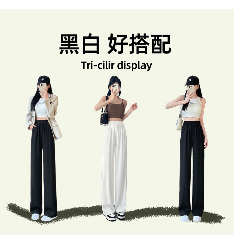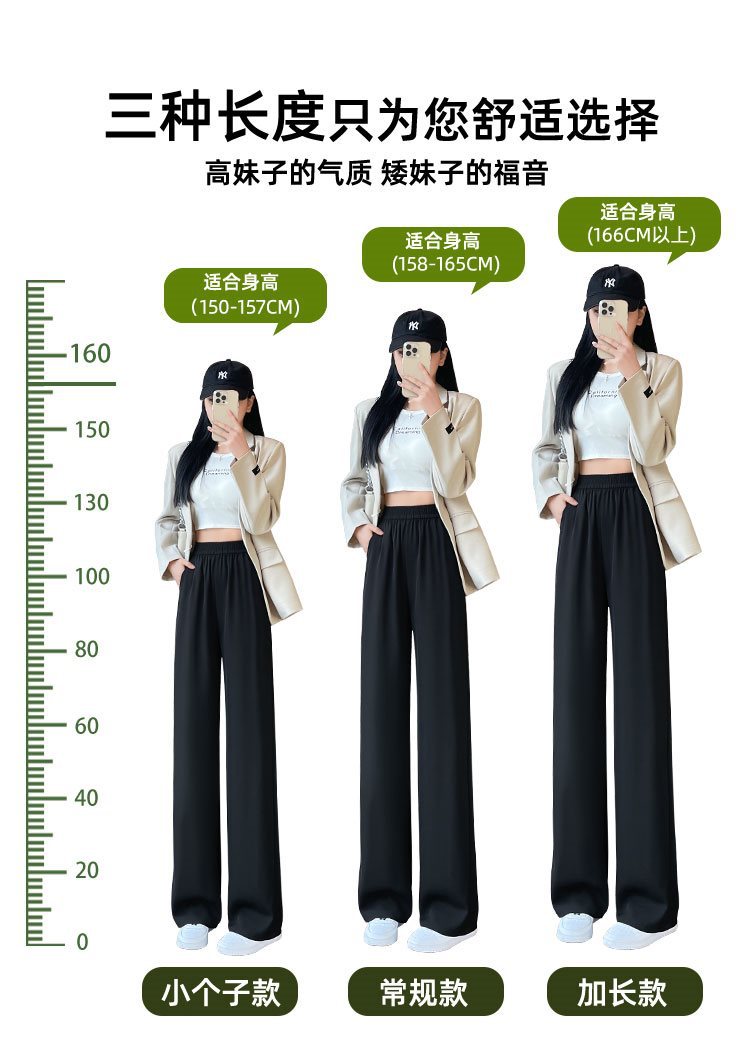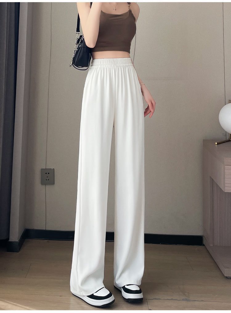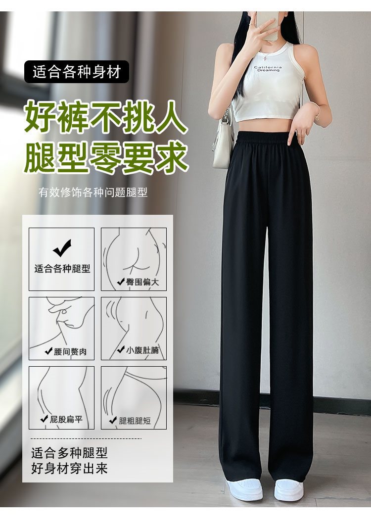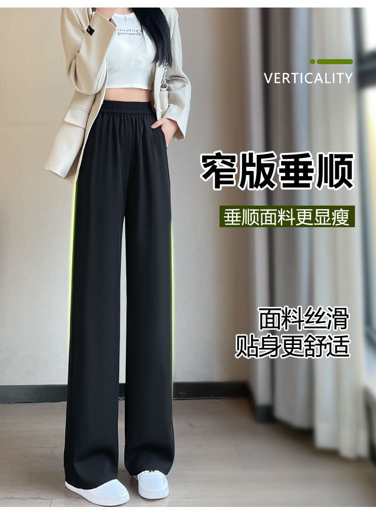 Широкие брюки из ледяного шелка для женщин, летние тонкие брюки 2025, новые повседневные драпированные узкие прямые черные брюки для костюма, летние