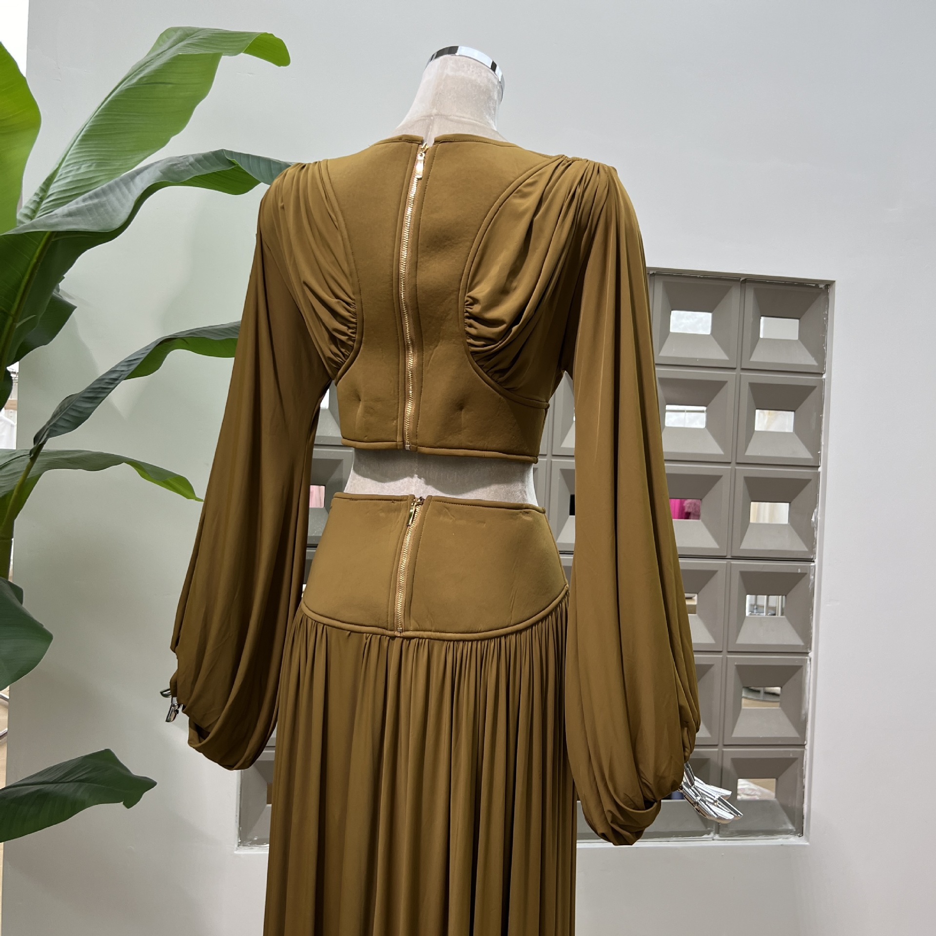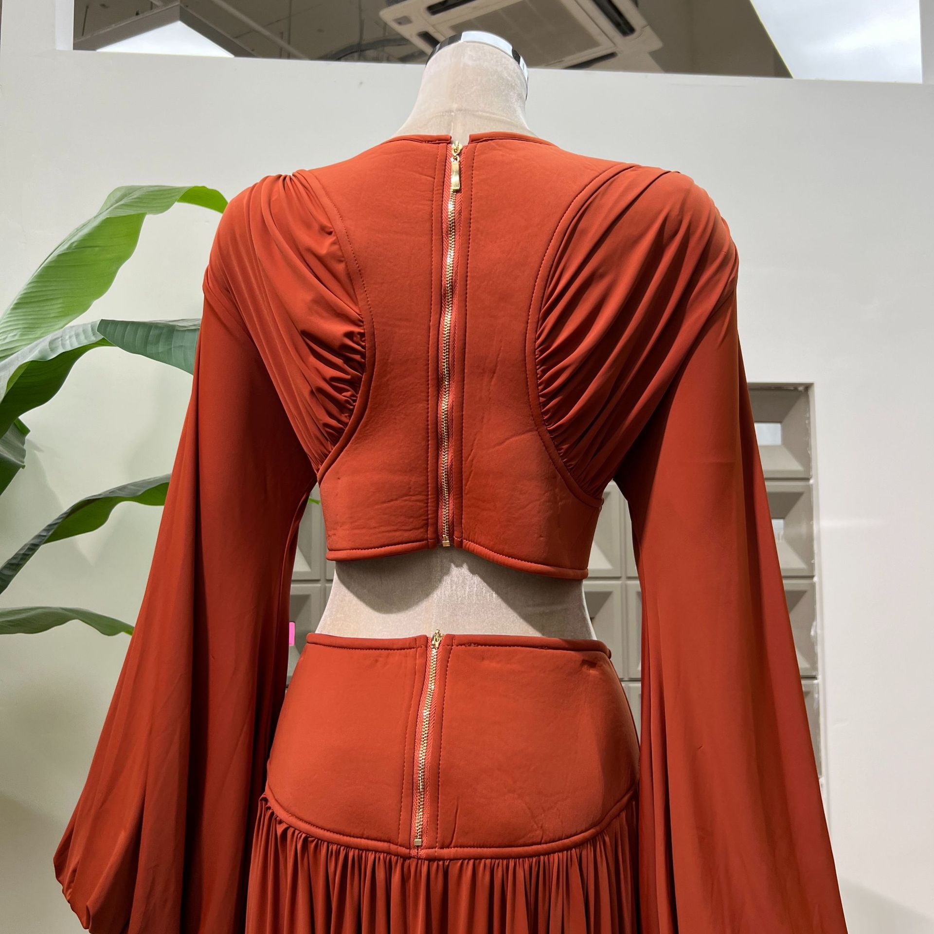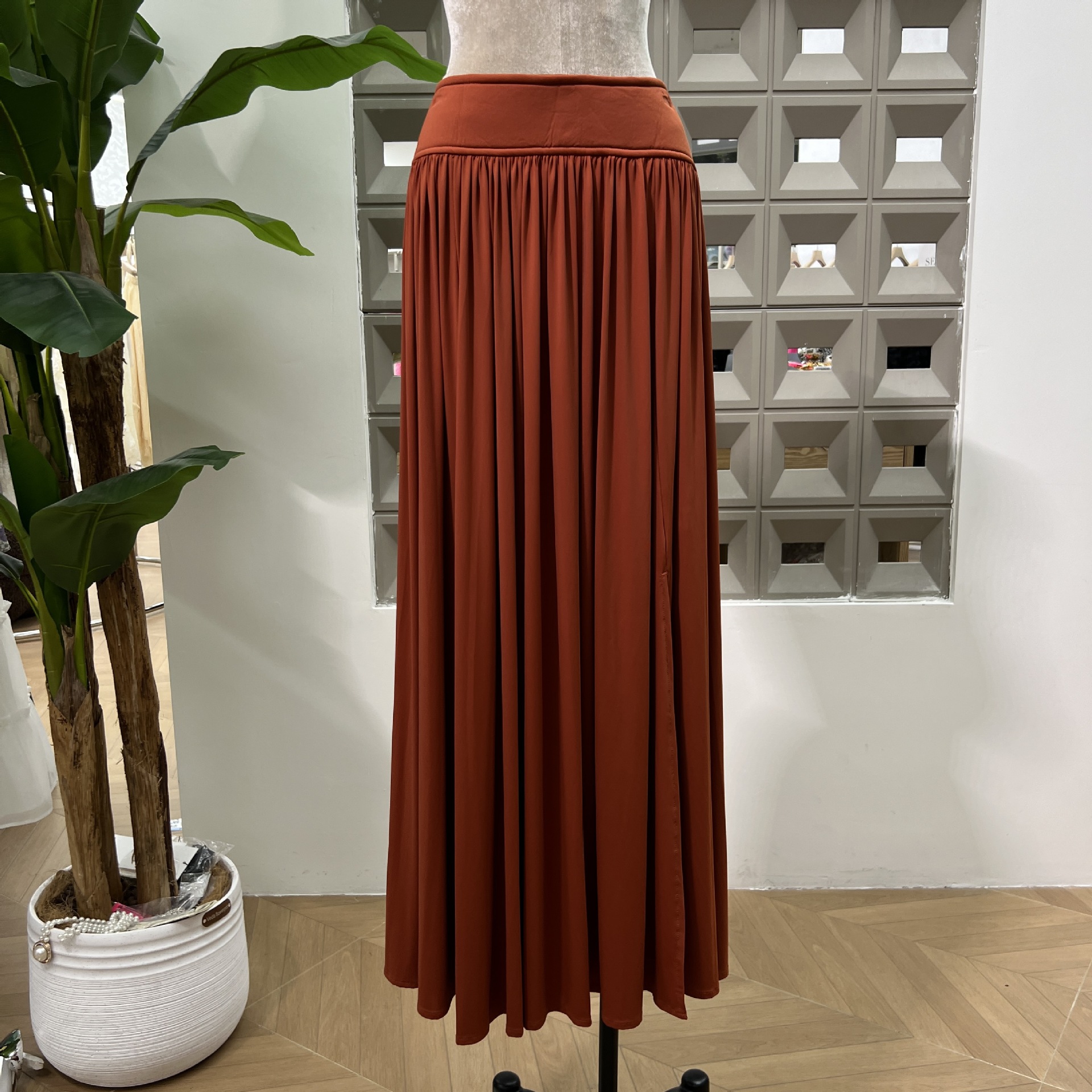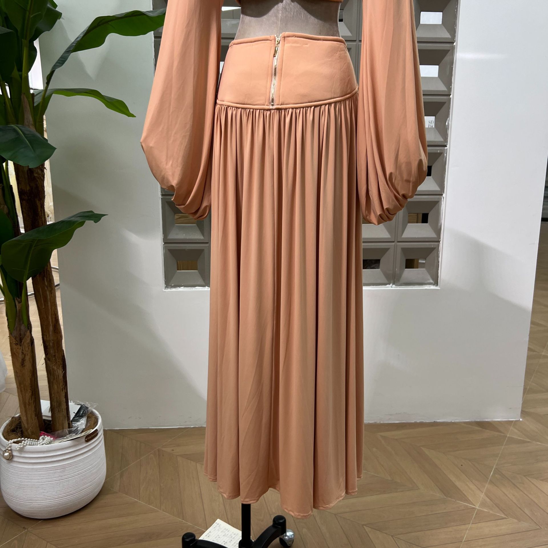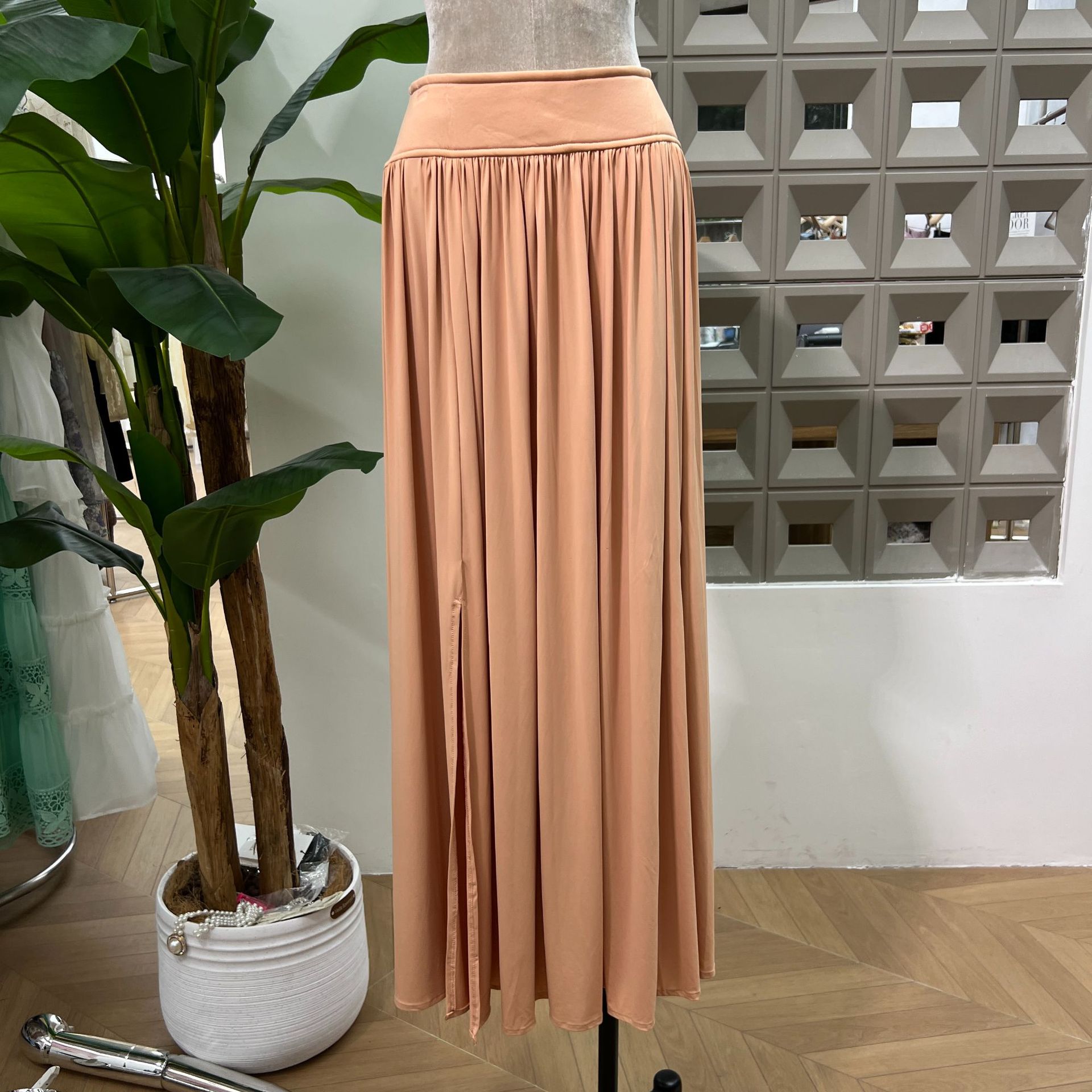 Женский летний комплект 2025 года от Amazon: мягкий топ с длинными рукавами и укороченный топ + юбка с длинным разрезом.