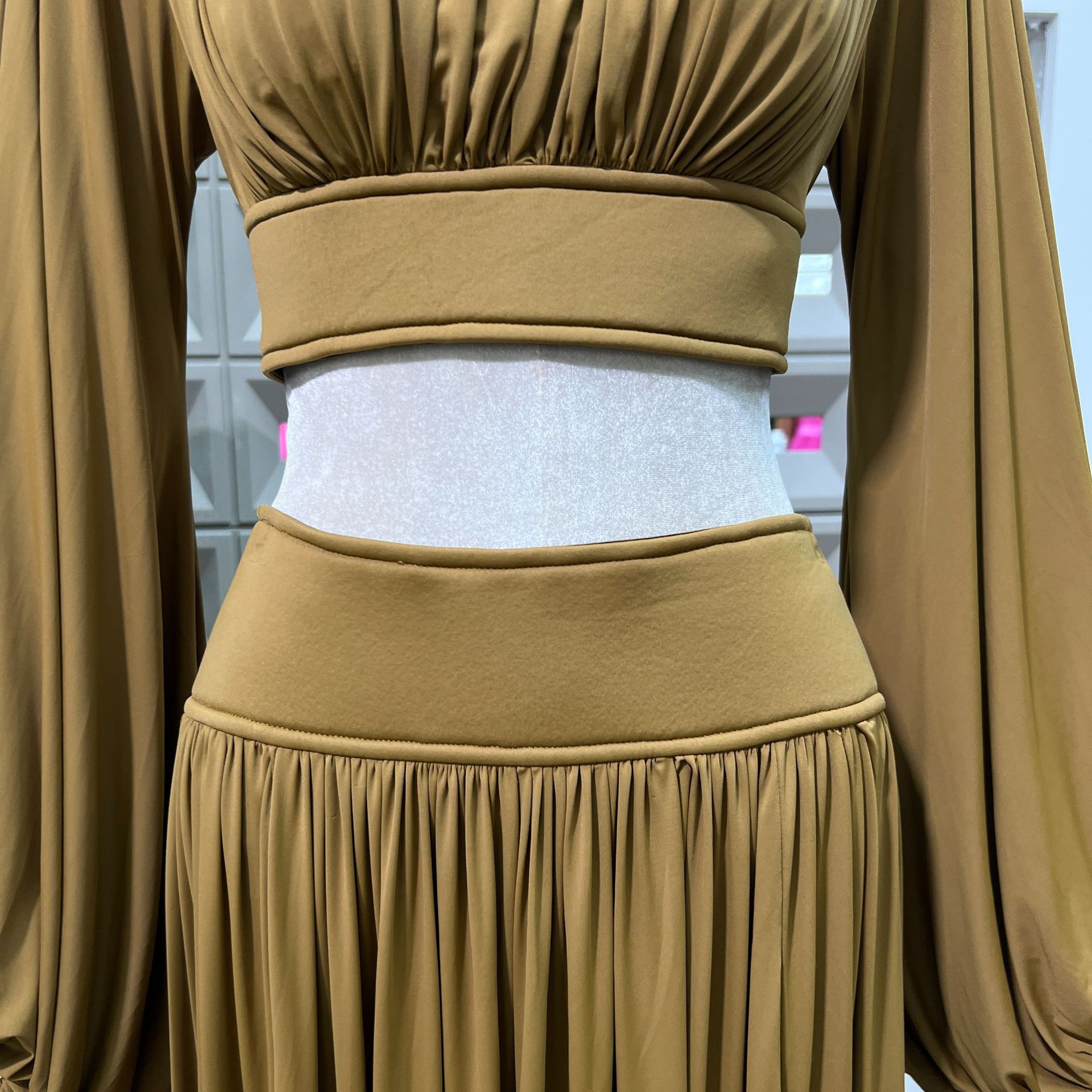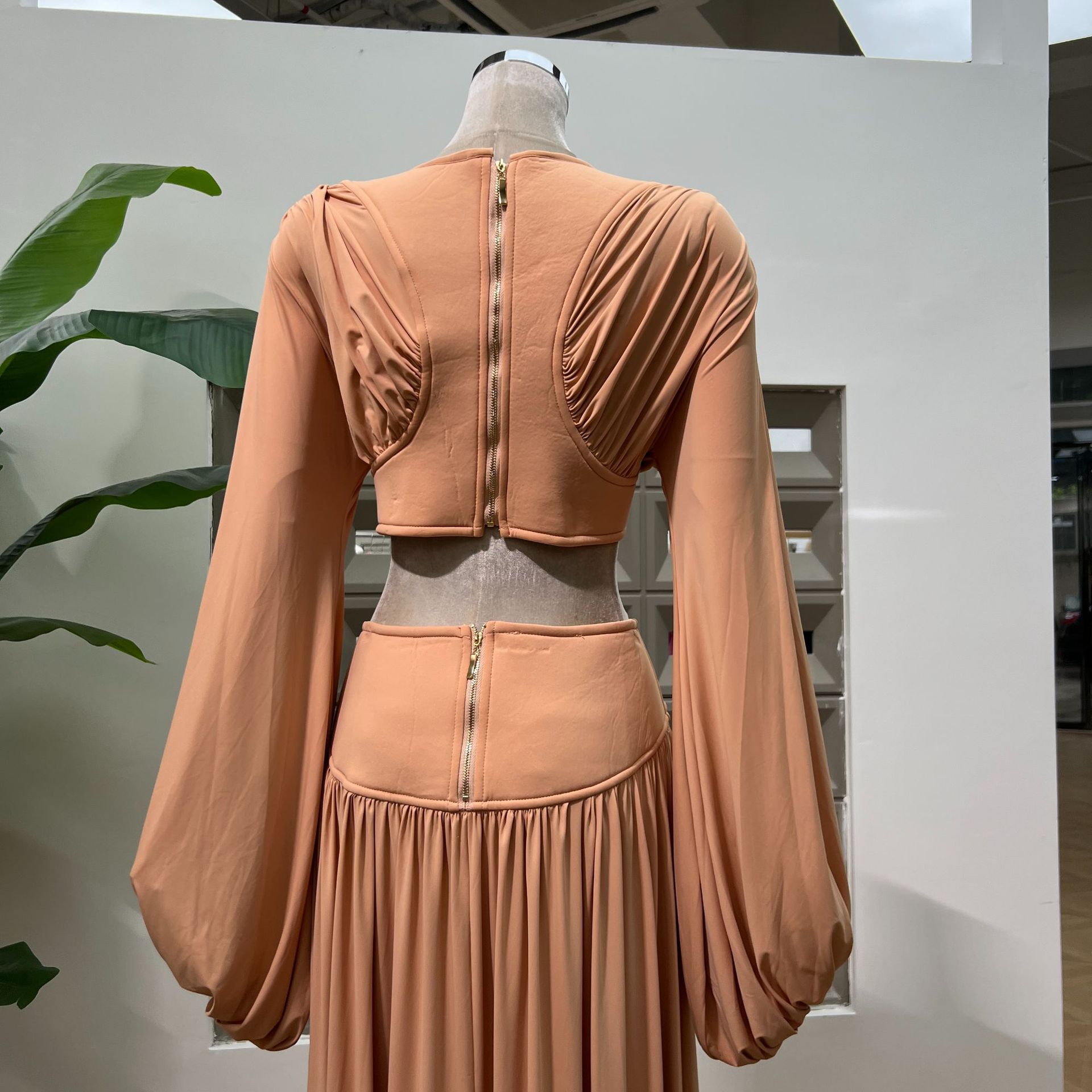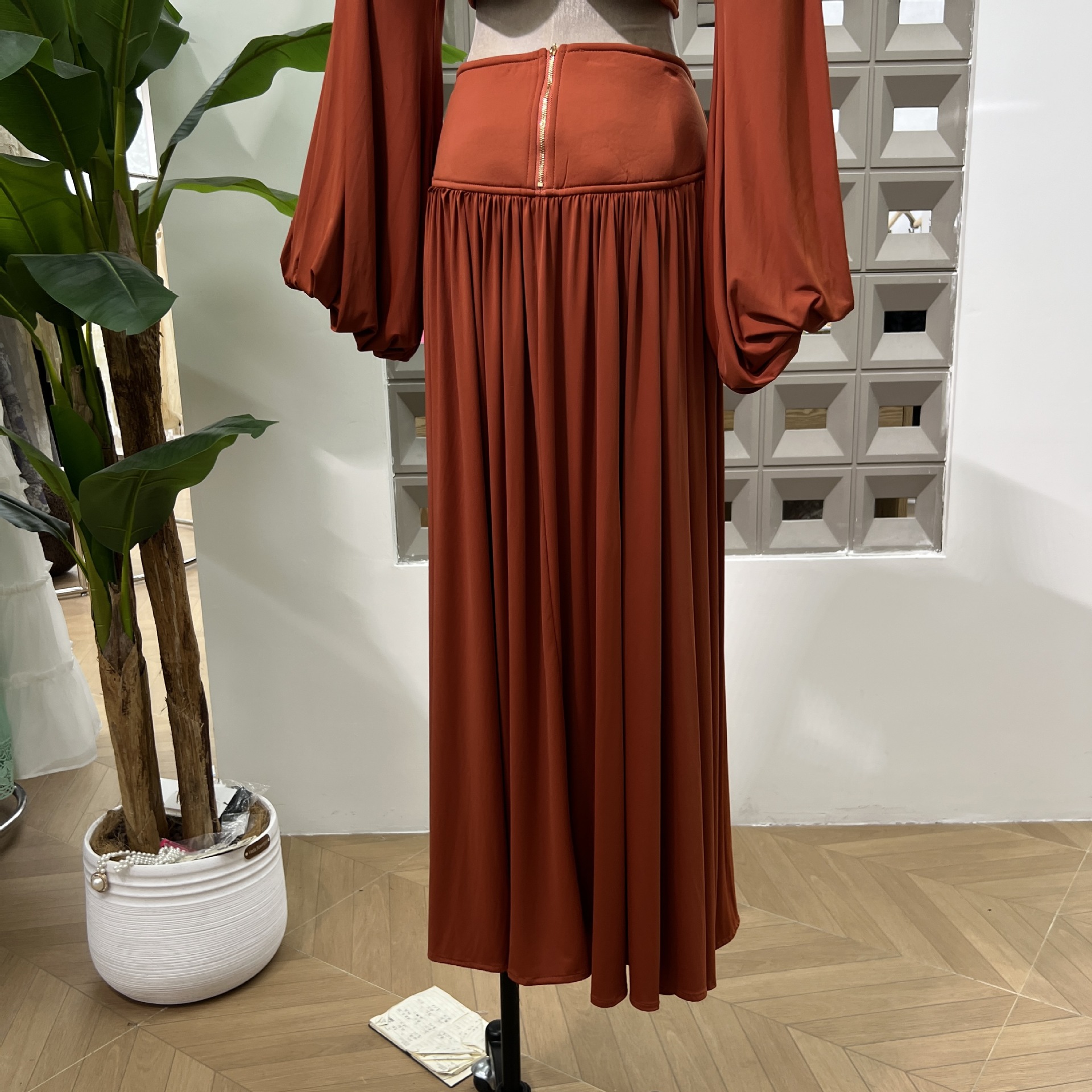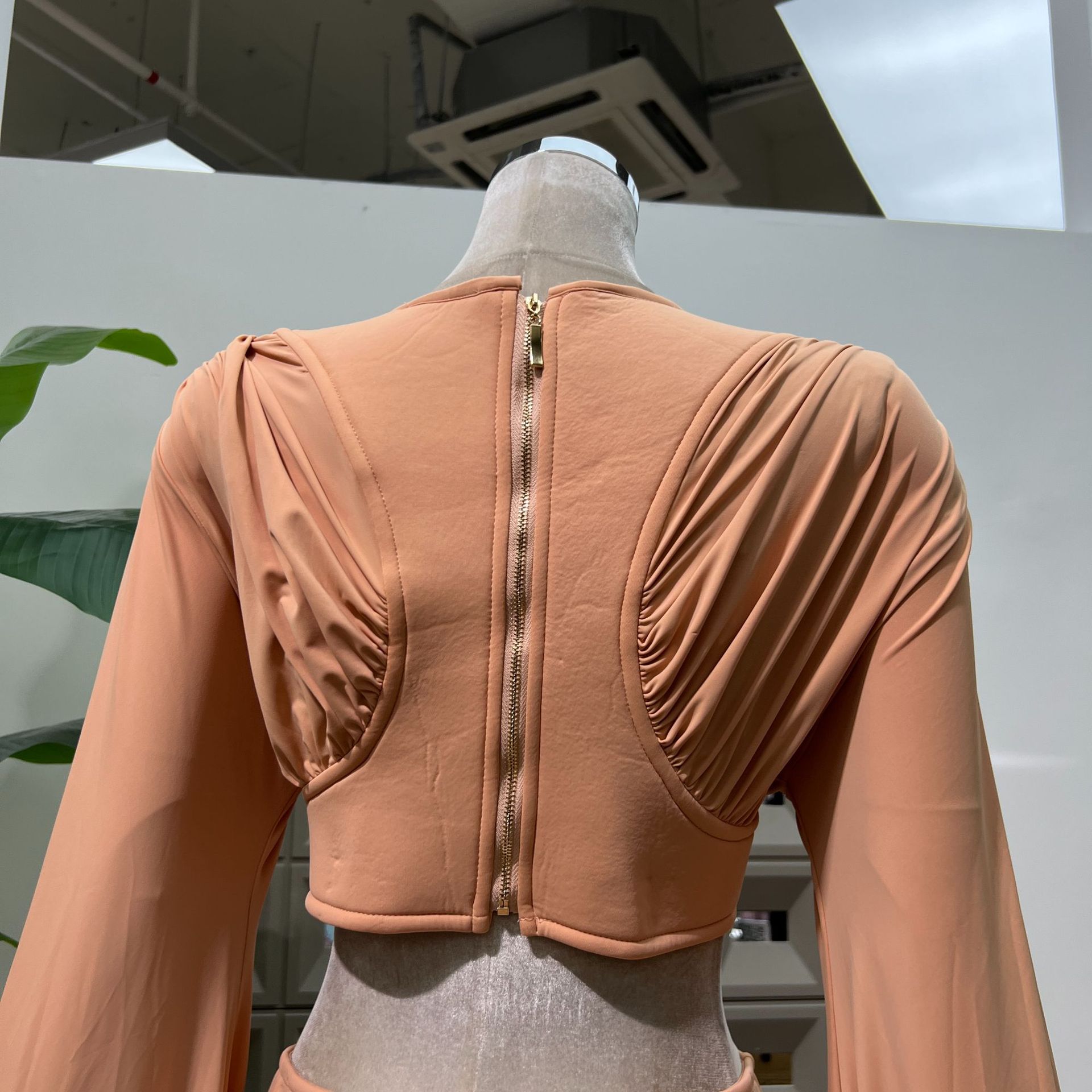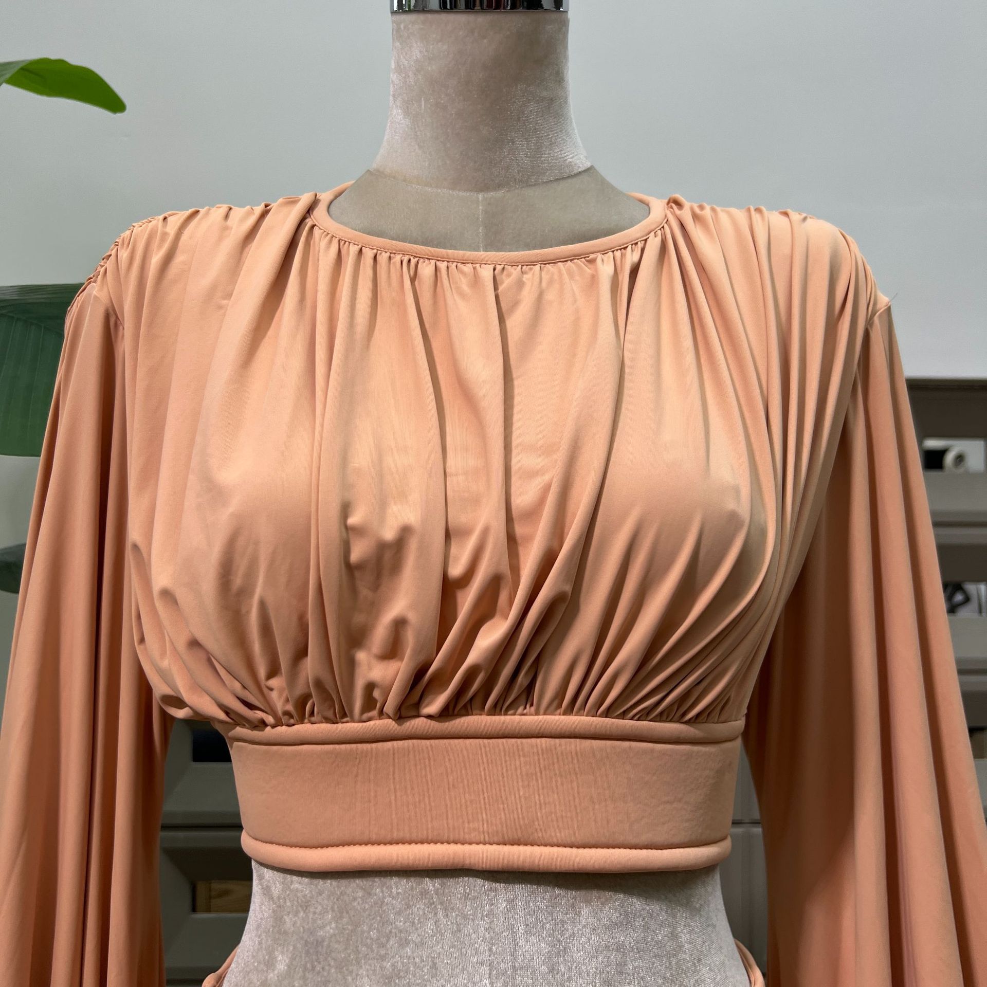 Женский летний комплект 2025 года от Amazon: мягкий топ с длинными рукавами и укороченный топ + юбка с длинным разрезом.
