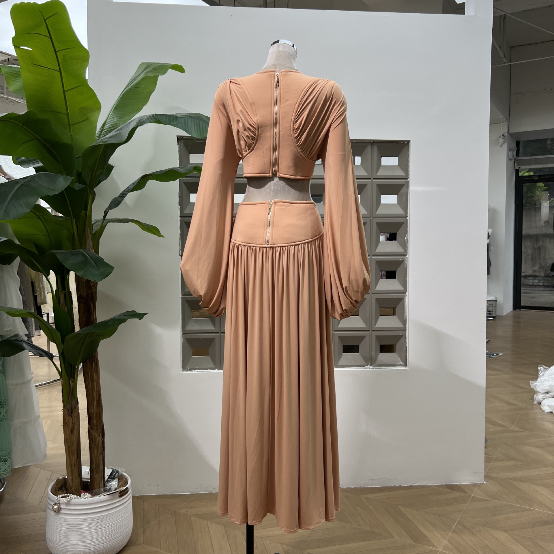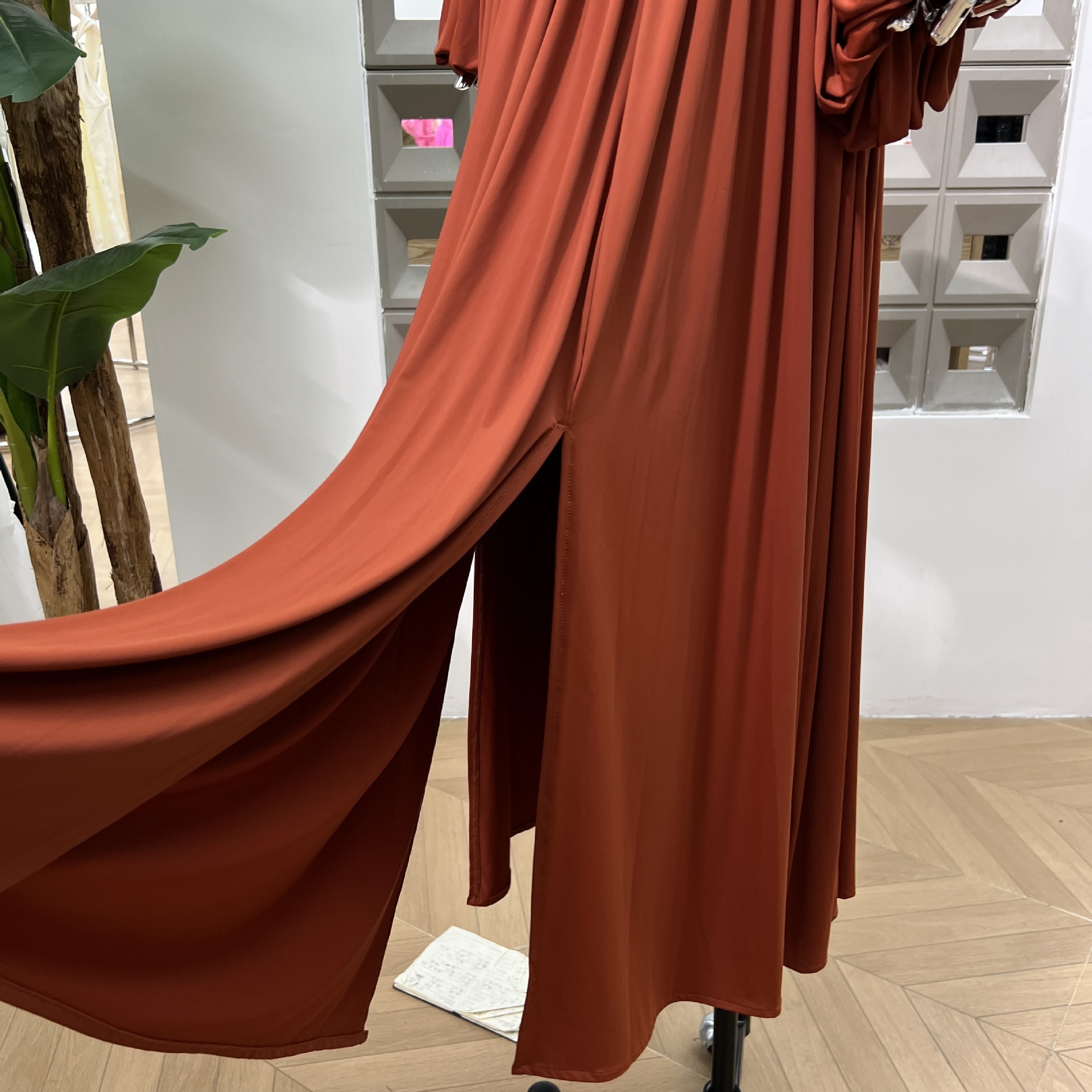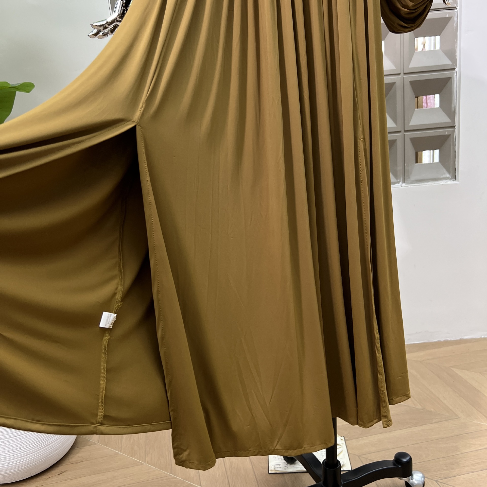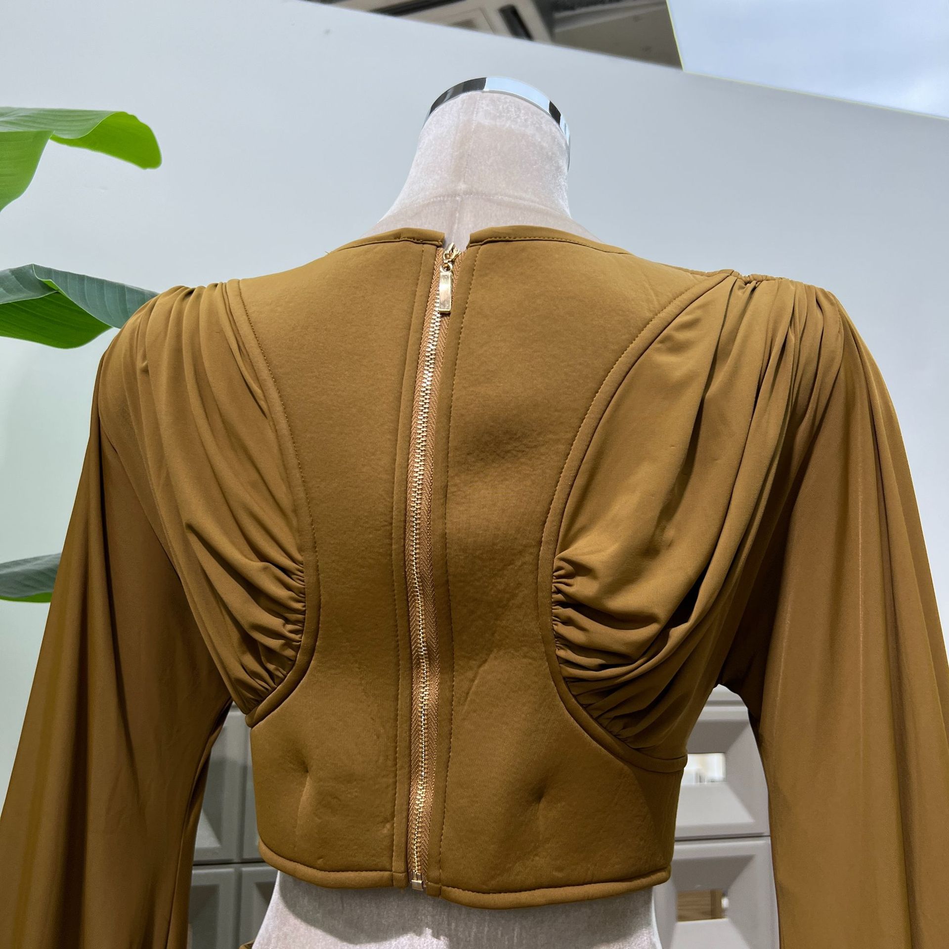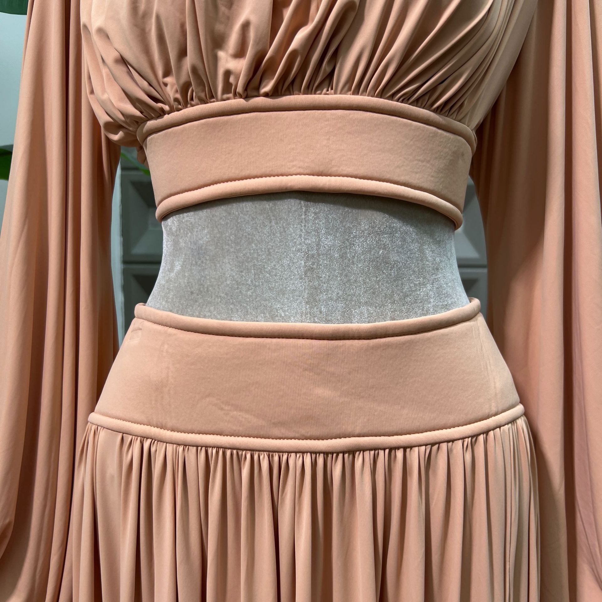 Женский летний комплект 2025 года от Amazon: мягкий топ с длинными рукавами и укороченный топ + юбка с длинным разрезом.
