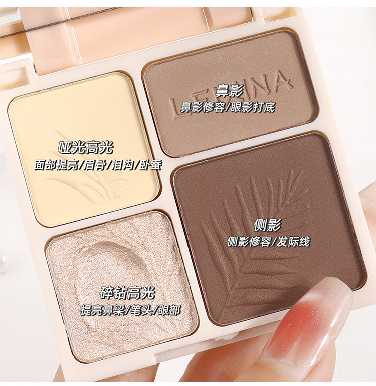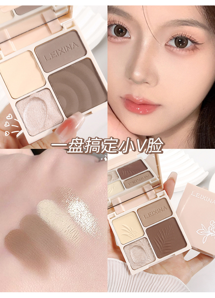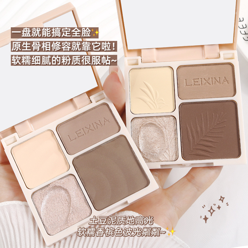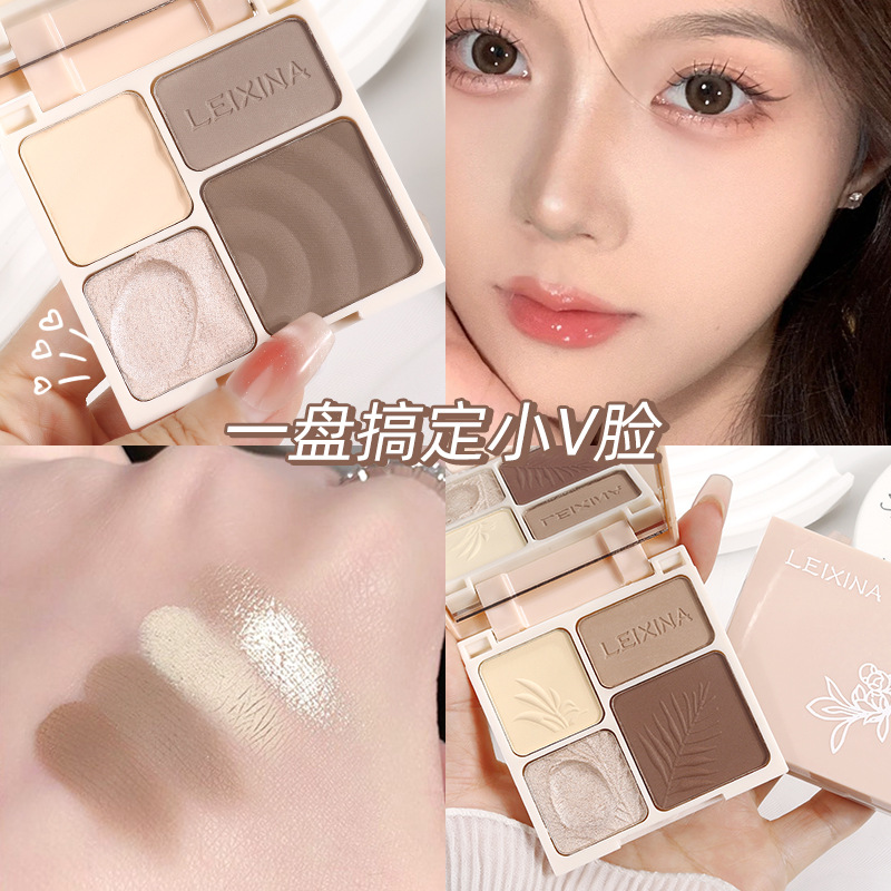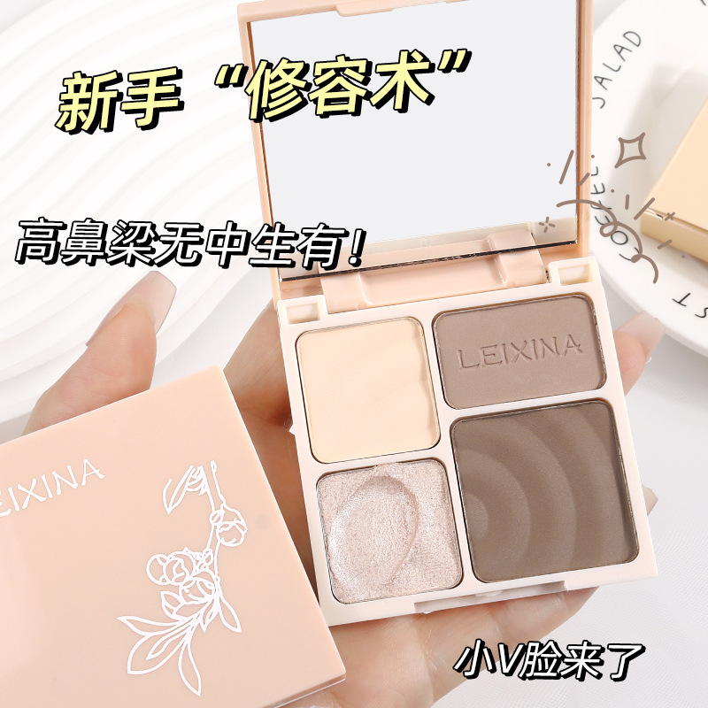 LEIXINA четырехцветная высокоглянцевая контурная комплексная палитра с перламутровым осветляющим блеском, матовые тени для носа, тени для век, универсальная палитра
