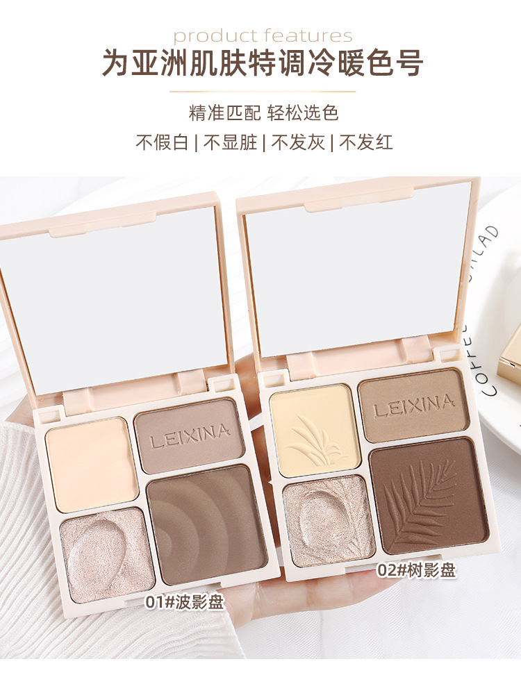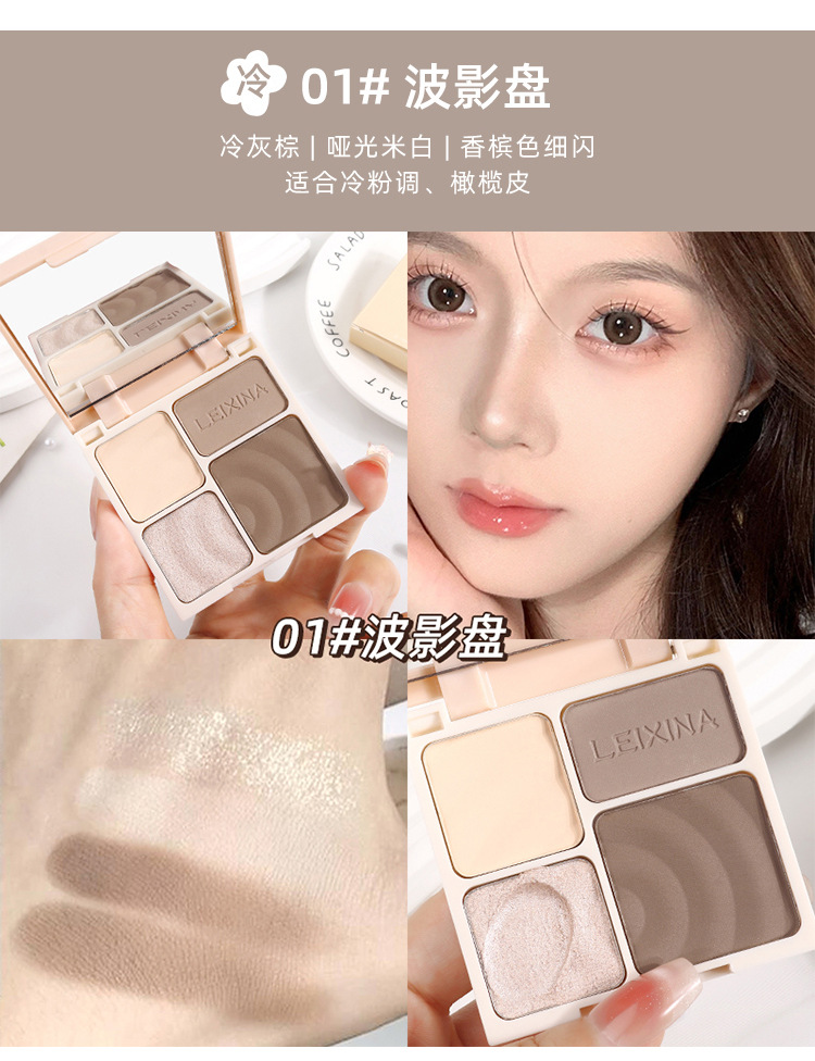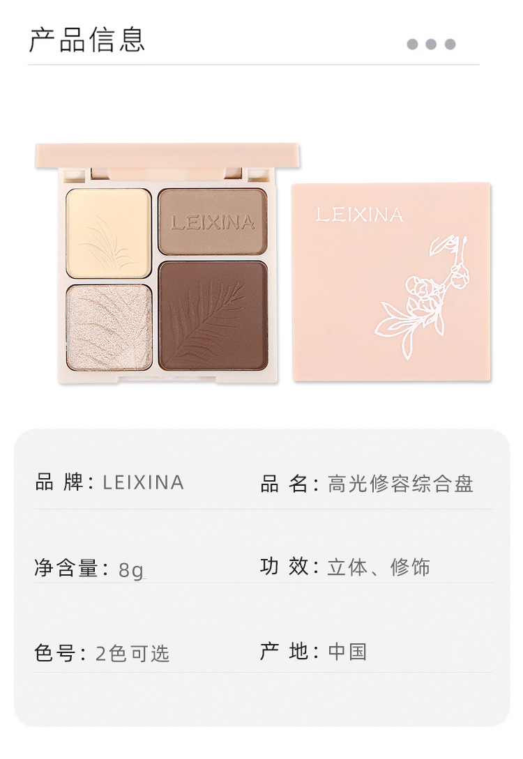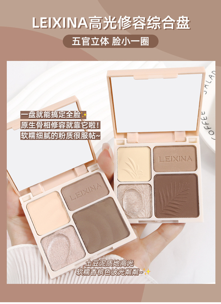 LEIXINA четырехцветная высокоглянцевая контурная комплексная палитра с перламутровым осветляющим блеском, матовые тени для носа, тени для век, универсальная палитра
