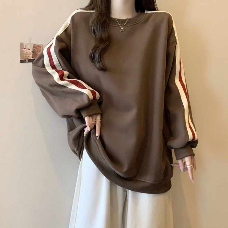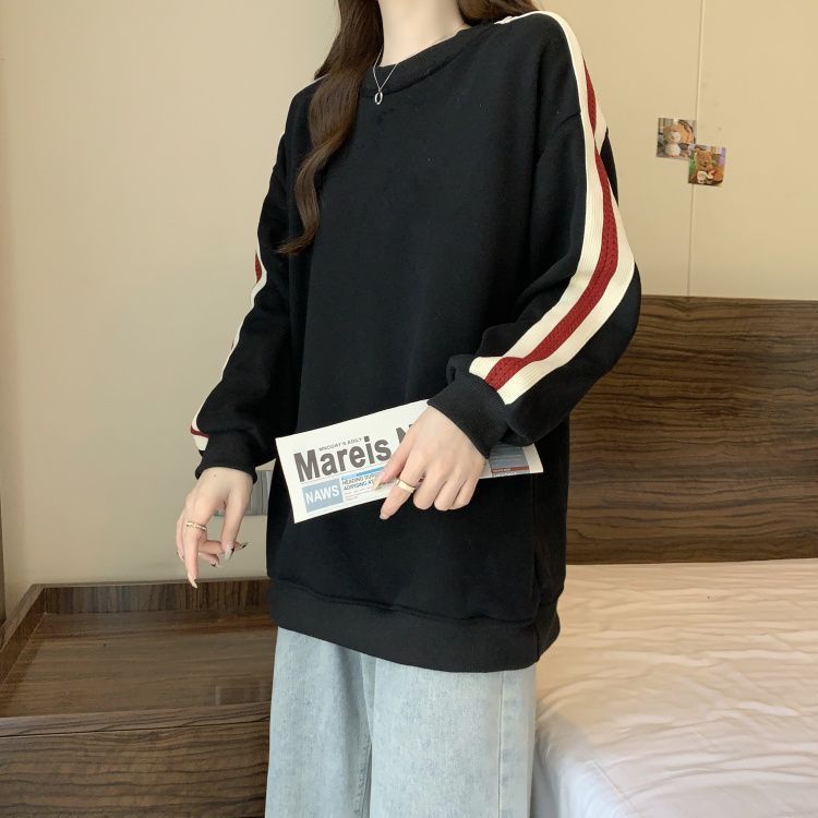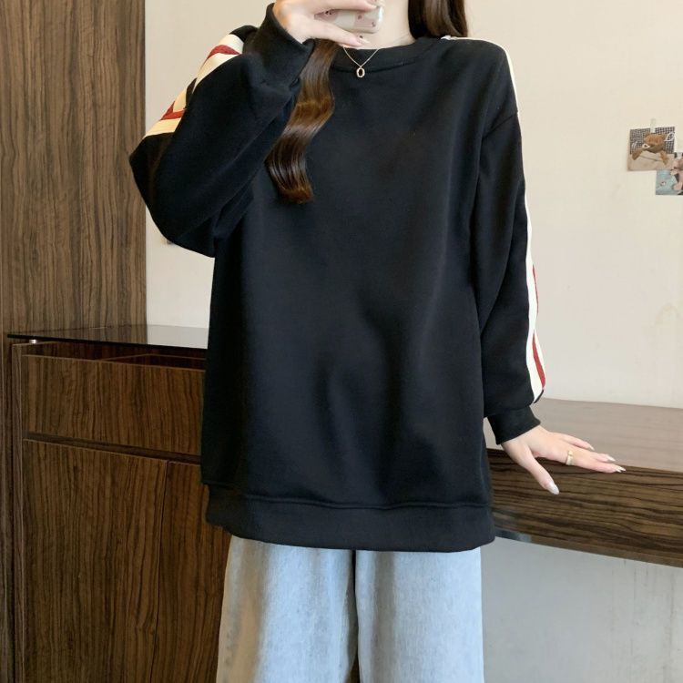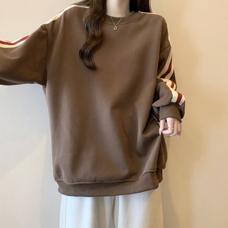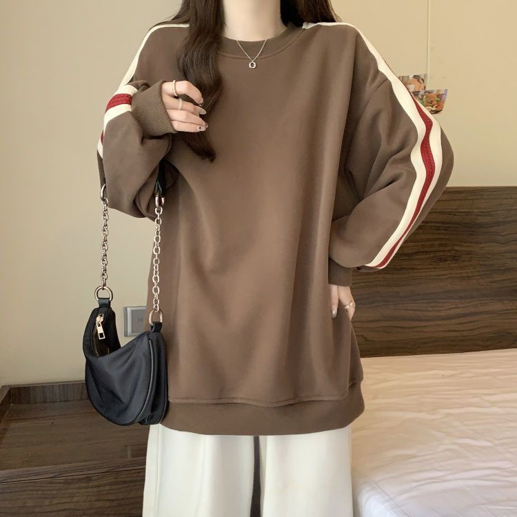 Утолщенная бархатная толстовка для женщин, осень и зима 2024, новый корейский стиль, свободный утягивающий верх на флисовой подкладке, теплый верхний топ с длинными рукавами