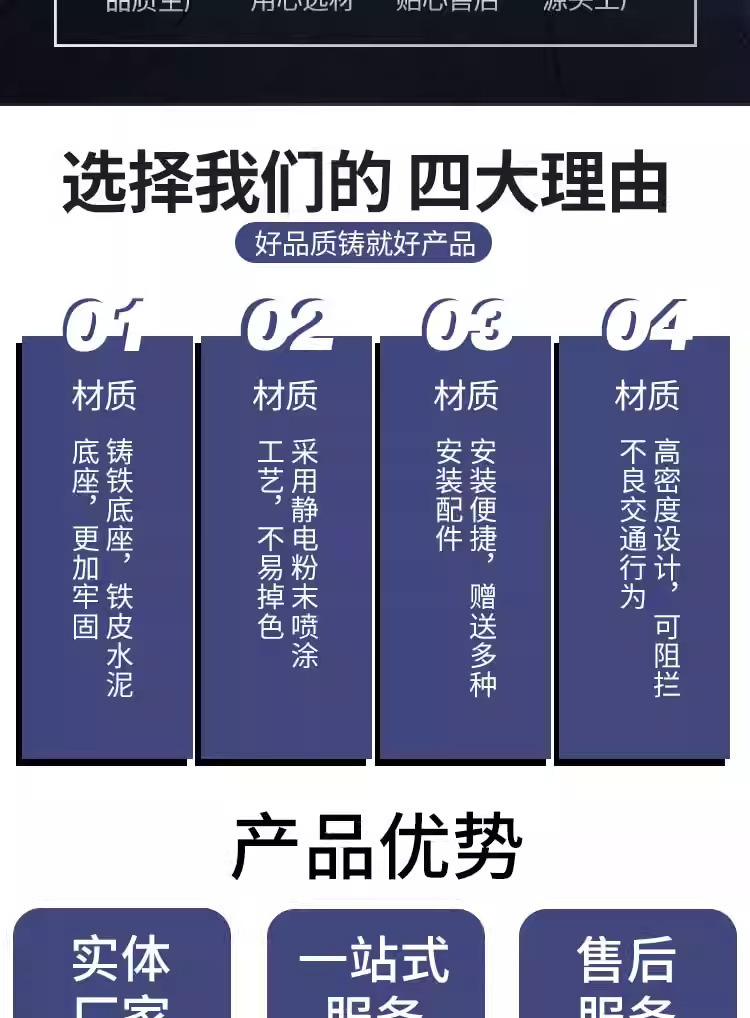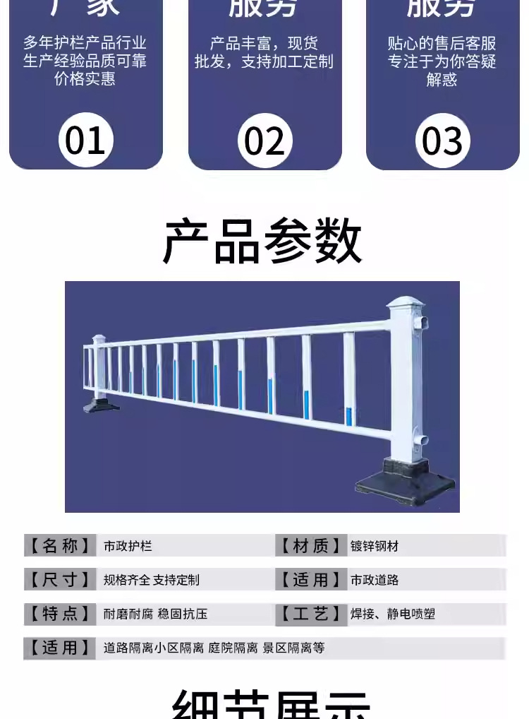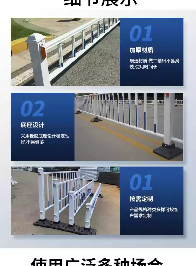 Обычные муниципальные средства; Ограждение из овечьего рога; Ограждение бренда Crane; Янчжоуский муниципальный ограждающий барьер; Очень толстый тип, высокий 0.7m комплектов; Очень толстый тип, высокий 0.9m комплектов; Очень толстый тип, высокий 1.1m комплектов; Очень толстый тип, высокий 1.3m комплектов; Очень толстый тип, высокий 1.6m комплектов; Одна очень толстая колонна высотой 0,6 м поставляется с небольшим резиновым основанием длиной 80 мм.; Одна очень толстая колонна высотой 0,8 м поставляется с небольшим резиновым основанием длиной 80 мм.; Одна очень толстая колонна длиной 1 м поставляется с небольшим резиновым основанием длиной 80 мм.; Одна очень толстая колонна высотой 1,2 м поставляется с небольшим резиновым основанием длиной 80 мм.; Одна очень толстая колонна высотой 1,5 м поставляется с небольшим резиновым основанием длиной 80 мм.; Характеристики высоты ограждения могут быть изменены. В комплект входит небольшая резиновая основа диаметром 80 мм.