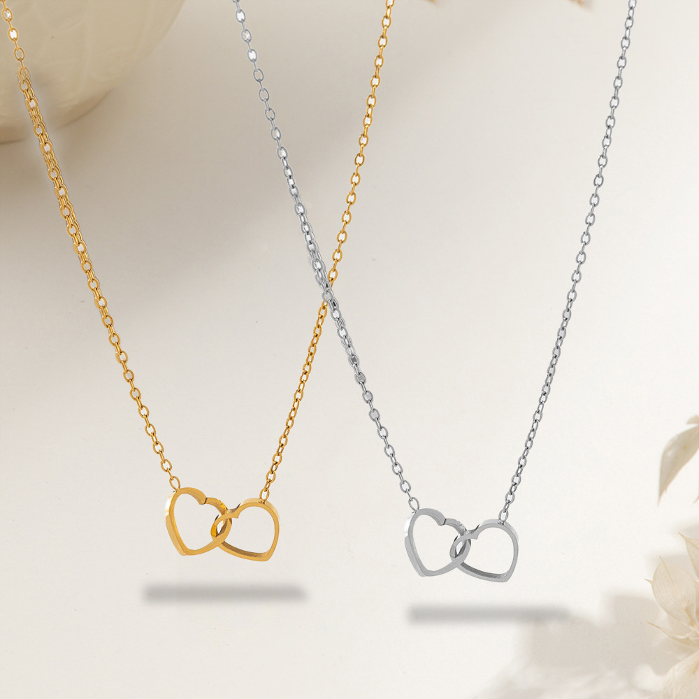Новая модная и персонализированная цепочка на ключицу, женская подвеска для аксессуаров, ожерелье из титановой стали в форме двойного сердца в форме сердца