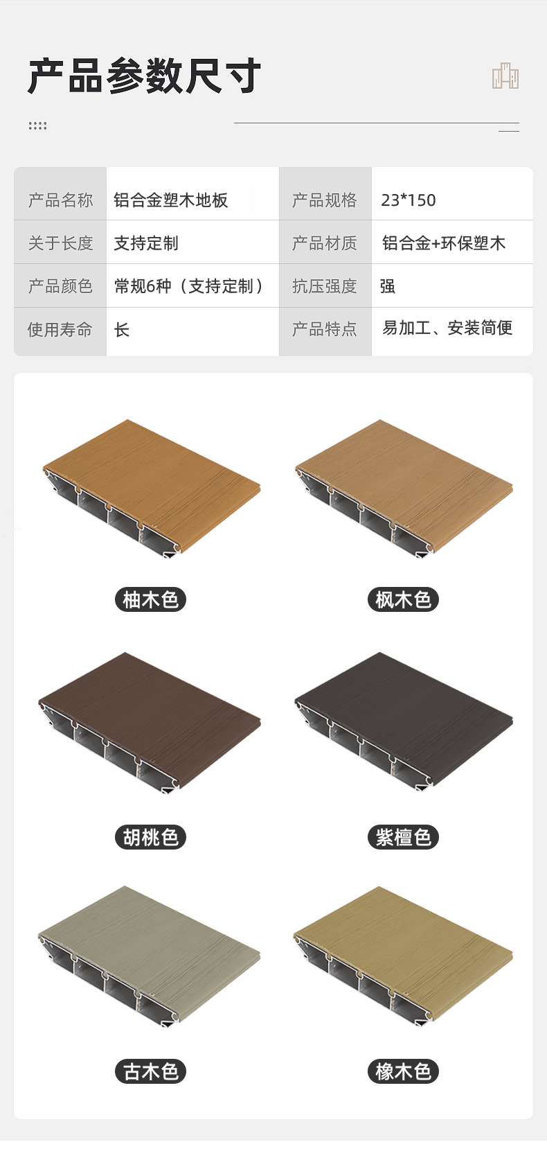 Напольное покрытие из алюминиевого сплава, уличное антикоррозийное деревянное напольное покрытие, древесно-пластиковый композит для уличных общественных дворов, имитация древесной текстуры, алюминиево-пластиковый композит, антикоррозийный и долговечный.