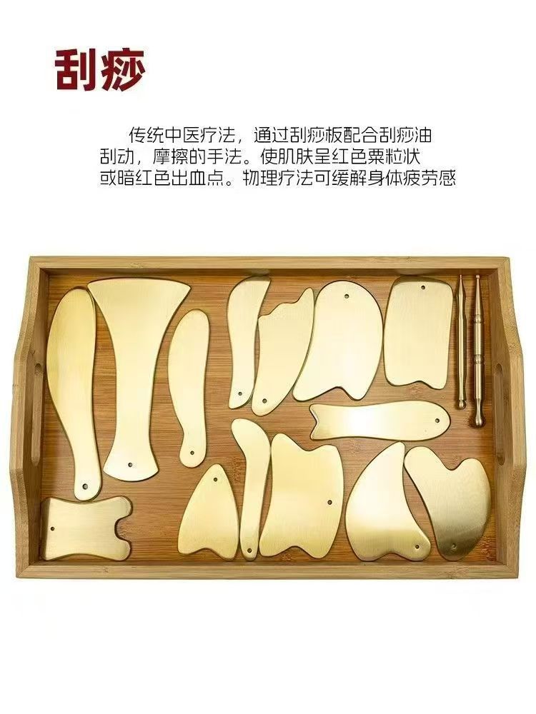 Скребковая доска из чистой меди (стиль птицы); Скребковая доска из чистой меди (маленькая ложка); Скребок из чистой меди (тип «мелкая рыба»); Скребковая доска из чистой меди (модель «дельфин»); Скребковая доска из чистой меди (тип старой монеты); Скребковая доска из чистой меди (гребенчатого типа); Скребковая доска из чистой меди (нож-дуга); Скребковая доска из чистой меди (модель в форме сердца); Скребковая доска из чистой меди (квадратного типа); Скребковая доска из чистой меди (любовный тип); Скребковая доска из чистой меди (рогового типа); Медная акупунктурная ручка (большой стиль); Медная акупунктурная ручка (маленькая); Скребковая доска из чистой меди (модель S большого размера); Скребковая доска из чистой меди (маленький нож) с зеркальной отделкой 4 см.; Скребковая доска из чистой меди (тип большого ножа), зеркальная отделка 4 см.; Скребковая доска из чистой меди (тип большого ножа); Медная лопата с открытой спиной; Скребковая доска из чистой меди (Т-образная медная лопата); медная ложка