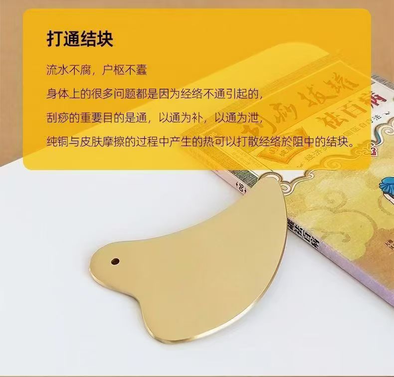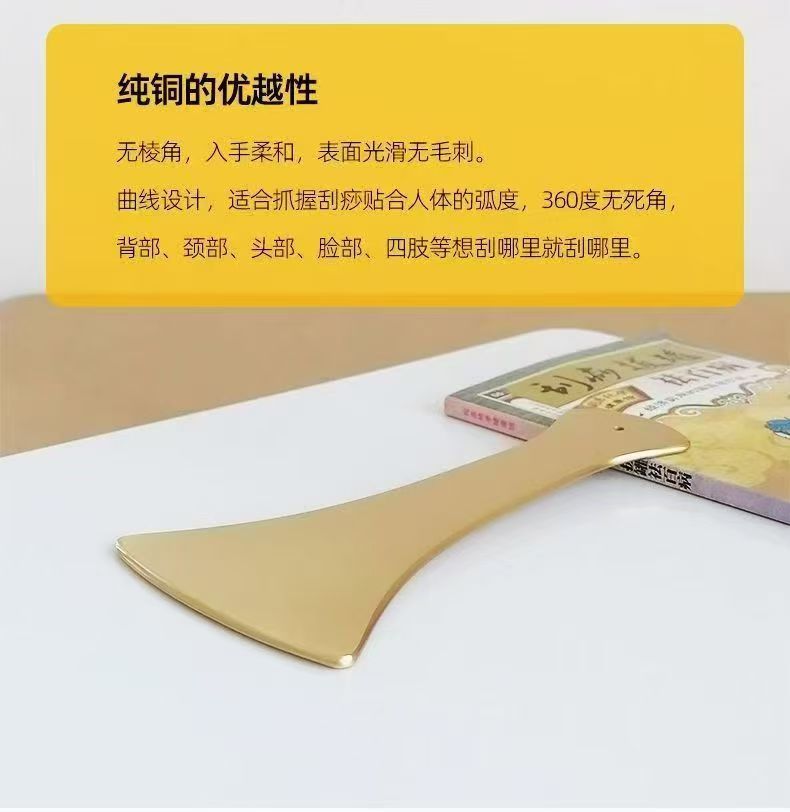 Скребковая доска из чистой меди, подходящая для всего тела, латунная скребковая доска, настоящая утолщенная универсальная скребковая доска для меридианов, чистый массаж и красота.