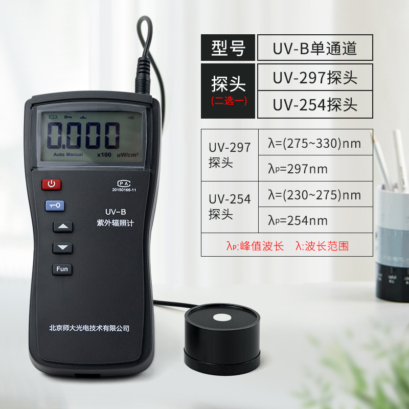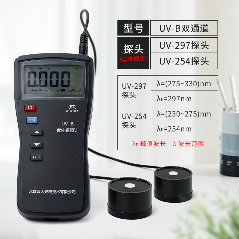 Измеритель излучения УФ-В УФ-А Тестер УФ-бактерицидной лампы Измеритель освещенности Двухканальный 297 нм от Пекинского нормального университета.