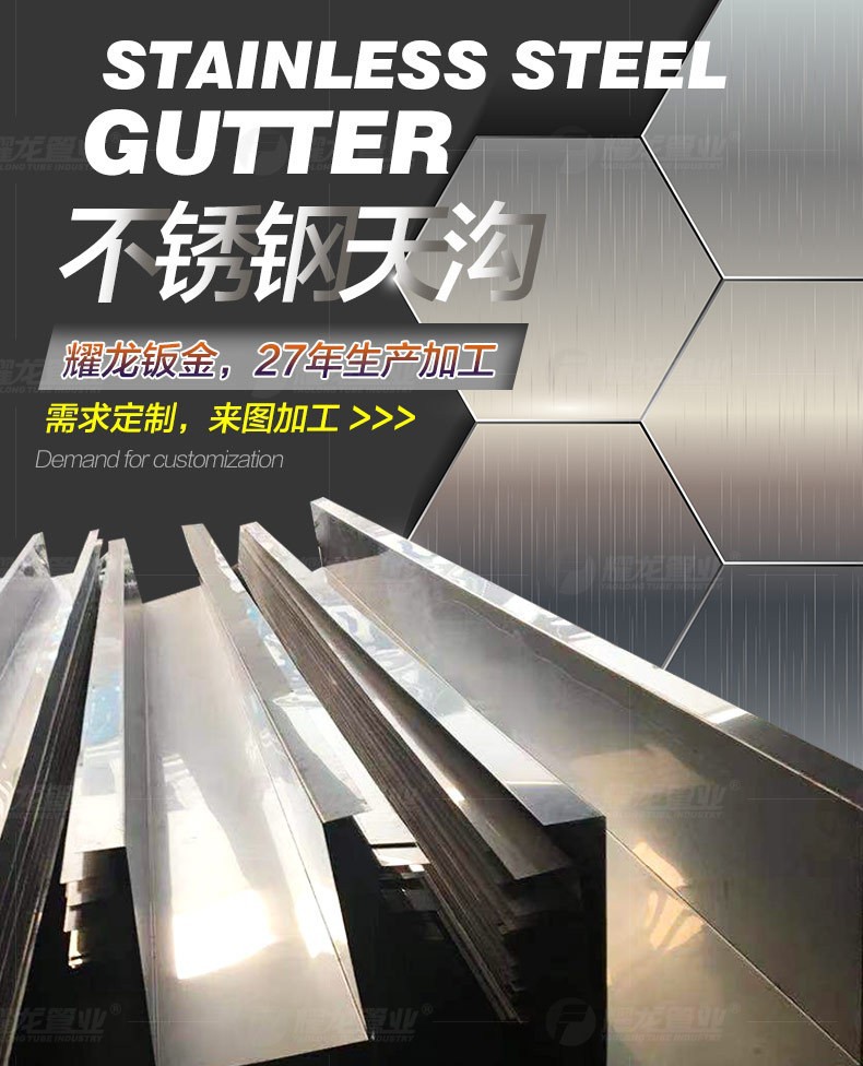 不锈钢天沟屋檐雨水槽304不锈钢雨水天沟下水道U型304不锈钢天沟
