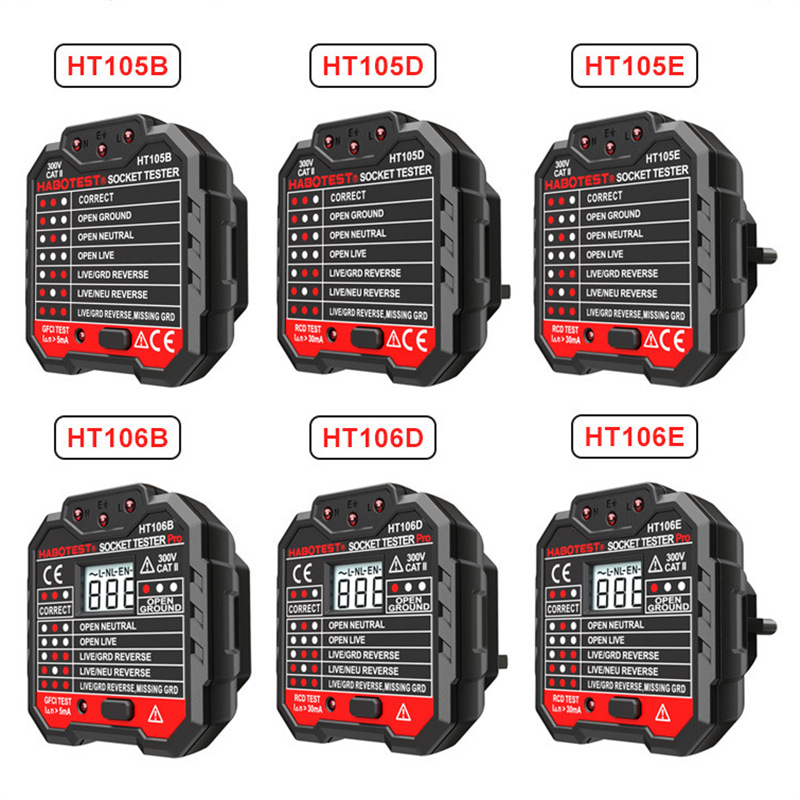 HT106B Детектор розеток с цифровым дисплеем, электроскоп, розетка, обнаружение полярности питания, интеллектуальный фазовый детектор