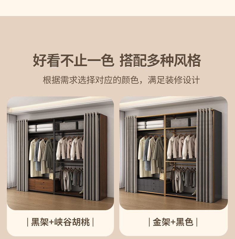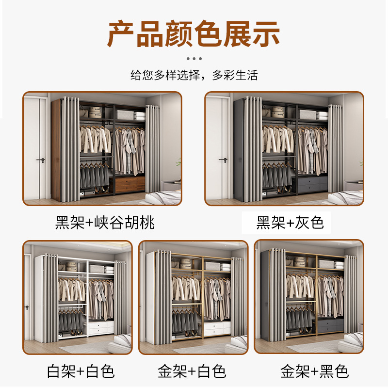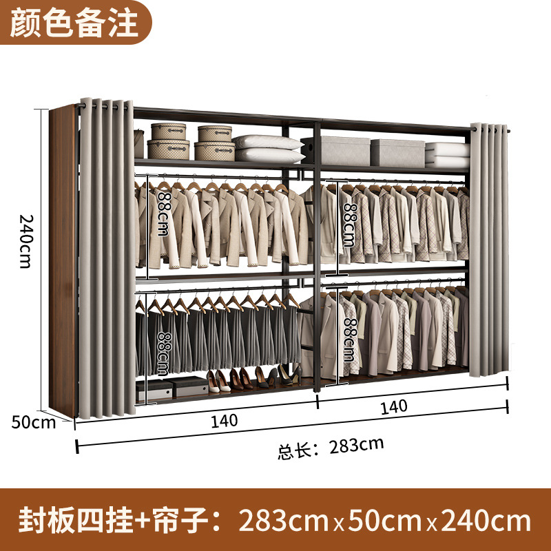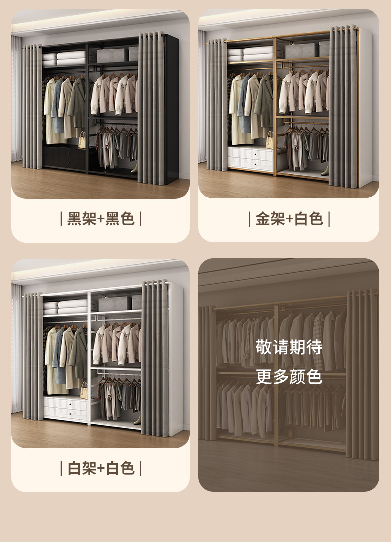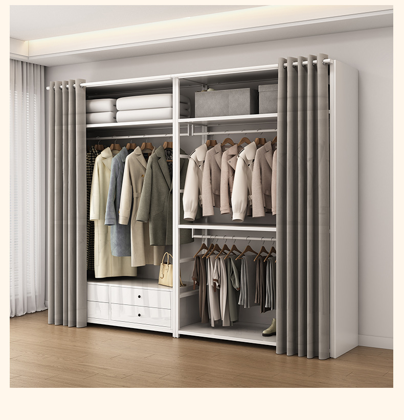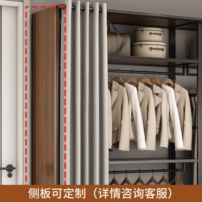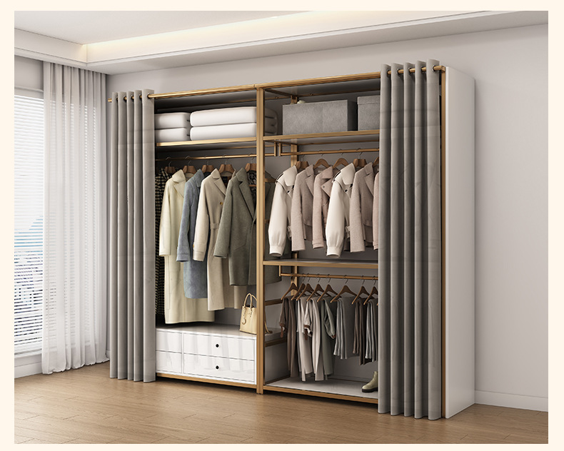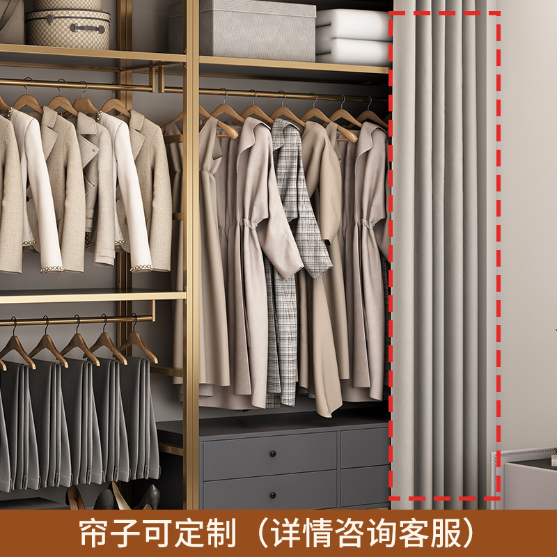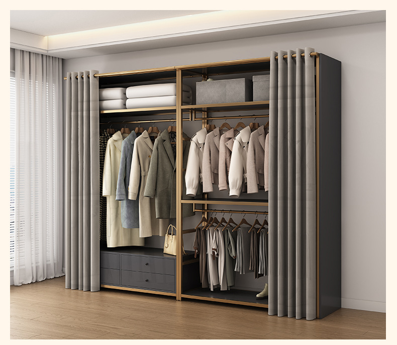 Встроенная гардеробная, домашняя комбинированная вешалка для одежды, напольная вешалка для одежды в спальню, металлический каркас, открытый шкаф с занавеской