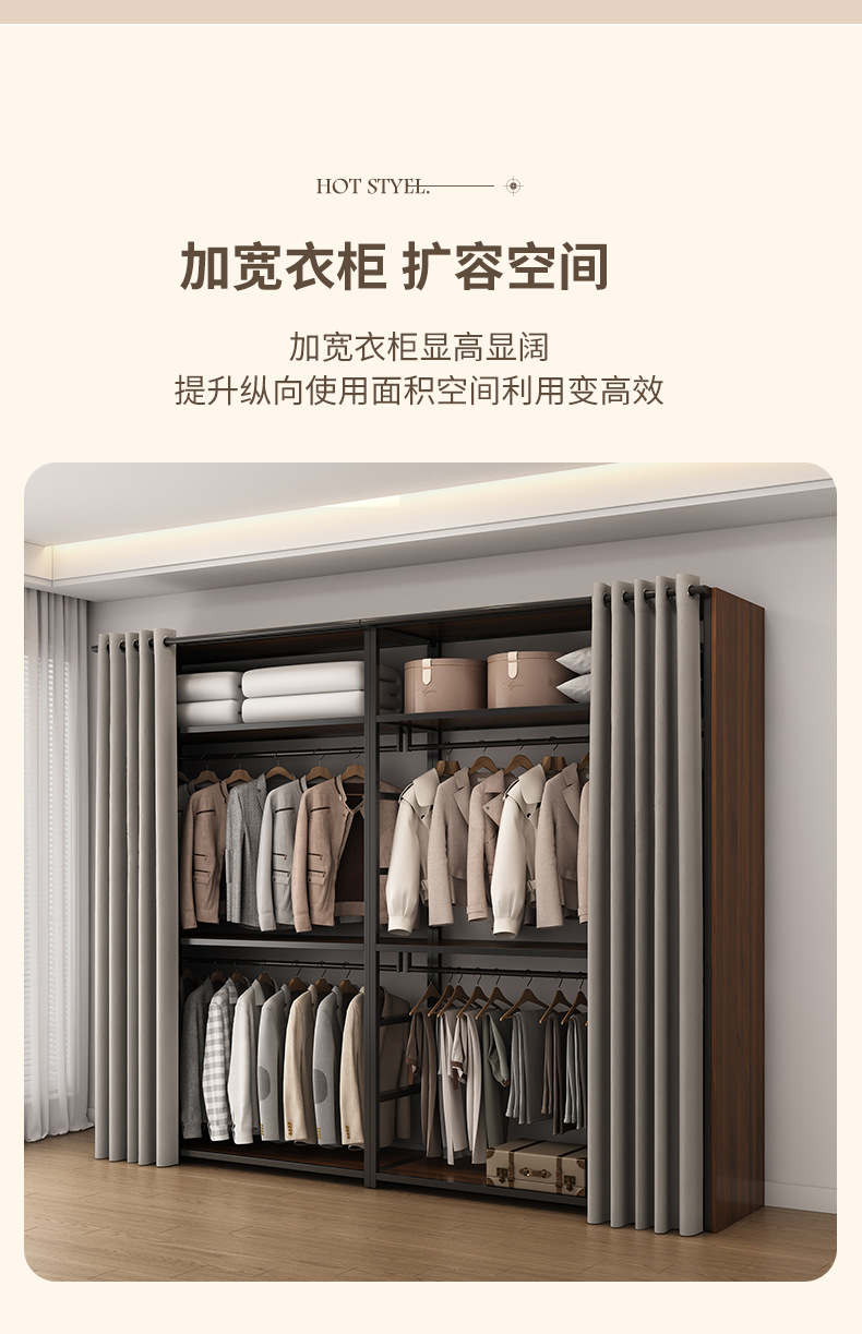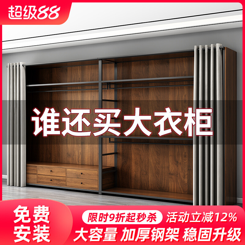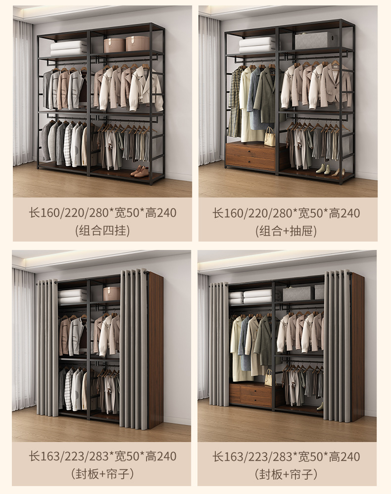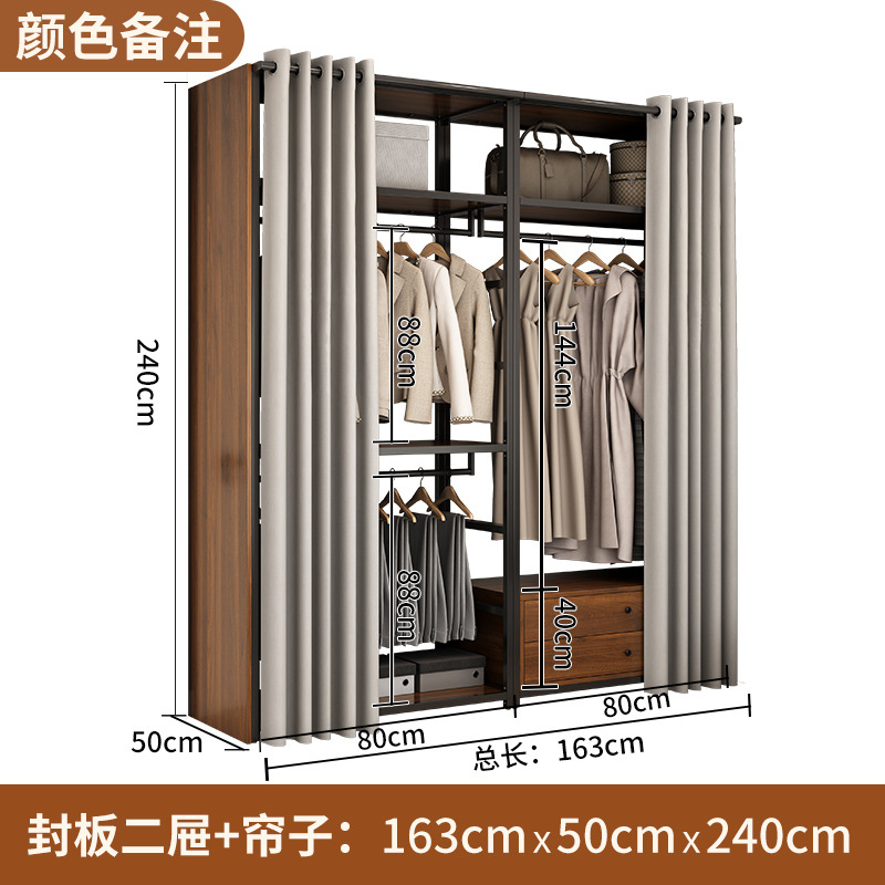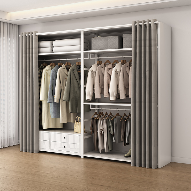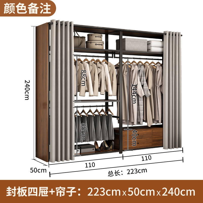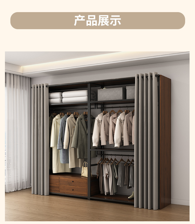 Встроенная гардеробная, домашняя комбинированная вешалка для одежды, напольная вешалка для одежды в спальню, металлический каркас, открытый шкаф с занавеской