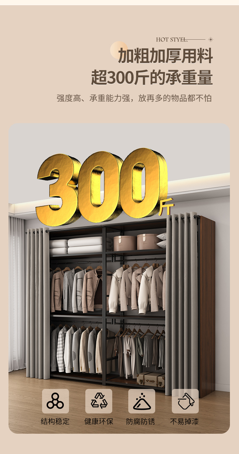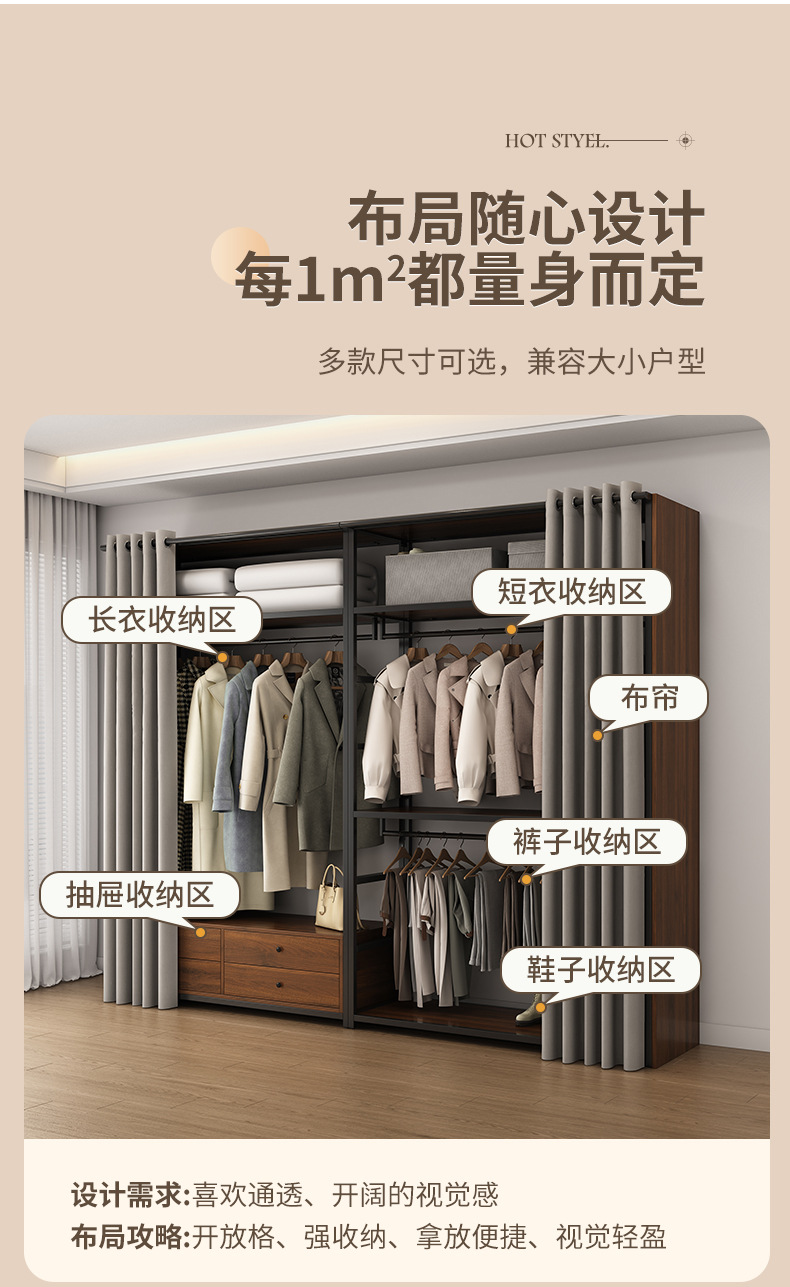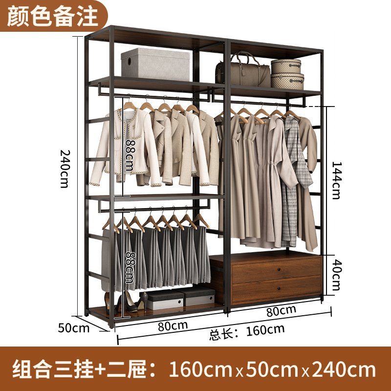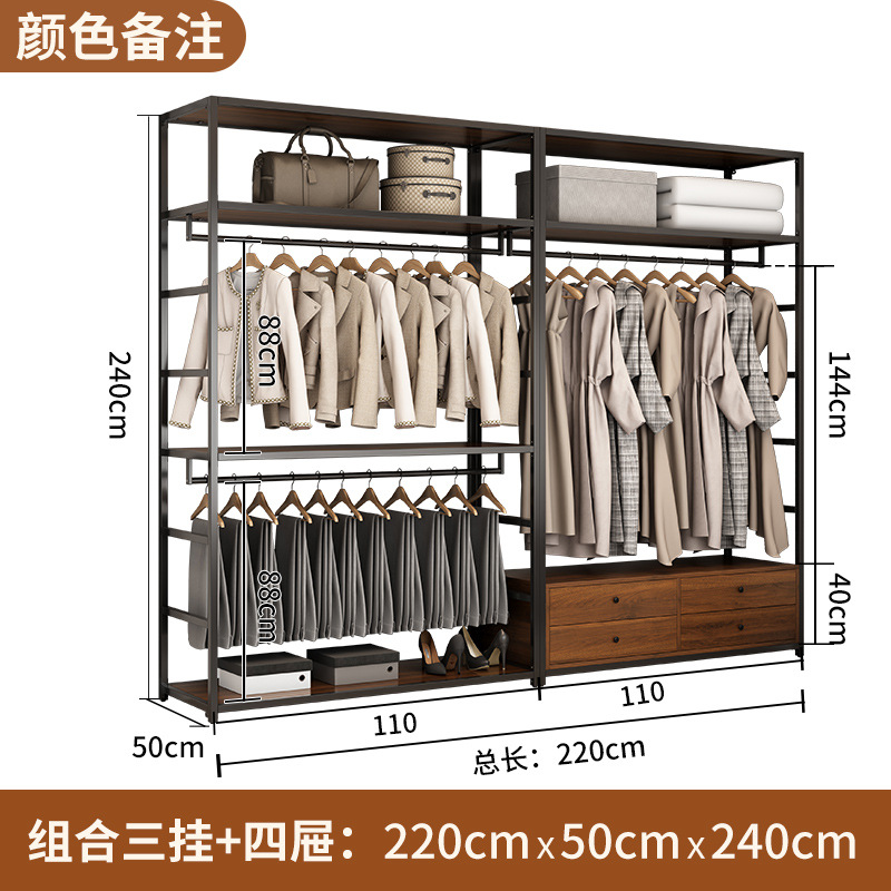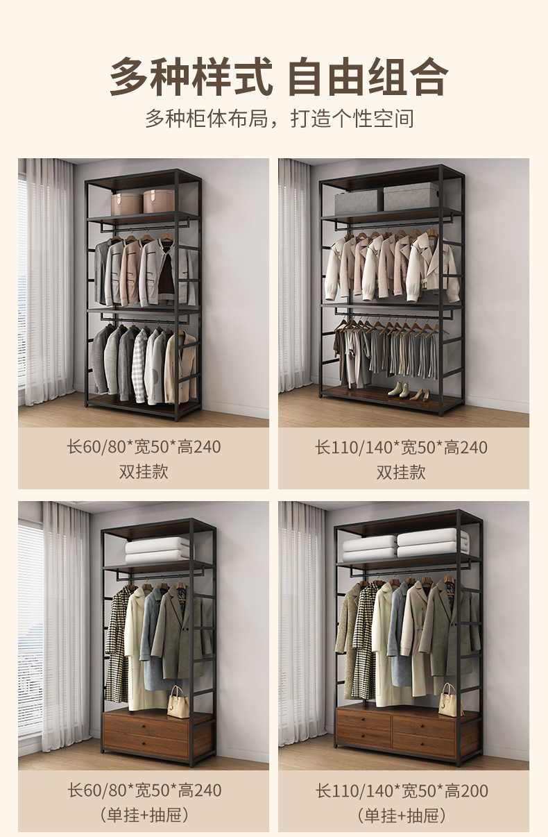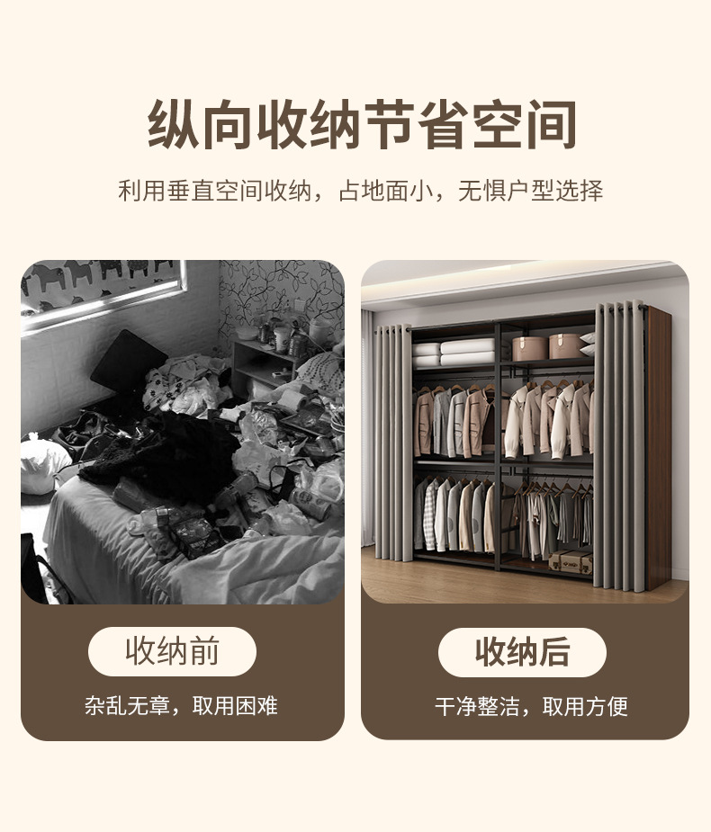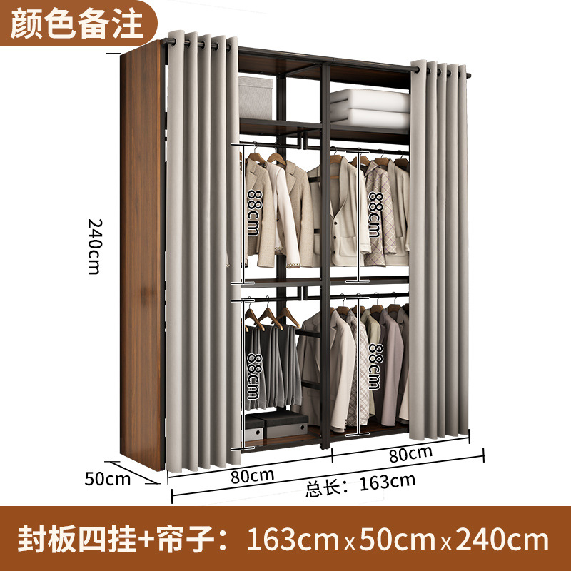Встроенная гардеробная, домашняя комбинированная вешалка для одежды, напольная вешалка для одежды в спальню, металлический каркас, открытый шкаф с занавеской