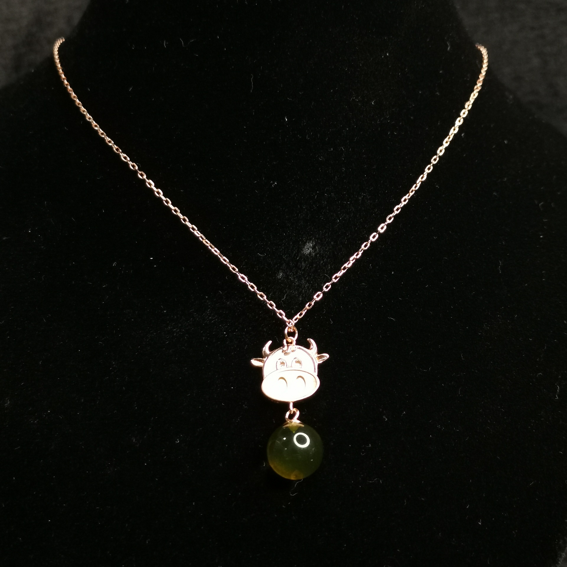 这款 5A 净水无杂牛蓝珀项链,珀体纯净无瑕,自然光下呈温润金调,强光透深邃蓝荧光。牛形设计灵动别致,寓意吉祥。链身精巧,蓝珀与金属相映,佩戴显温婉贵气,兼具装饰与收藏价值,是独特品味之选。