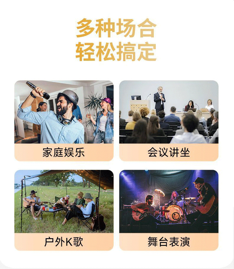 Микрофон для музыкальных инструментов; Компьютерный микрофон для караоке; Профессиональный записывающий микрофон; Микрофон для караоке для мобильного телефона; Микрофон для прямой трансляции; КТВ/выступательский микрофон; Игровой голосовой микрофон; Внешний микрофон звуковой карты; Домашний микрофон