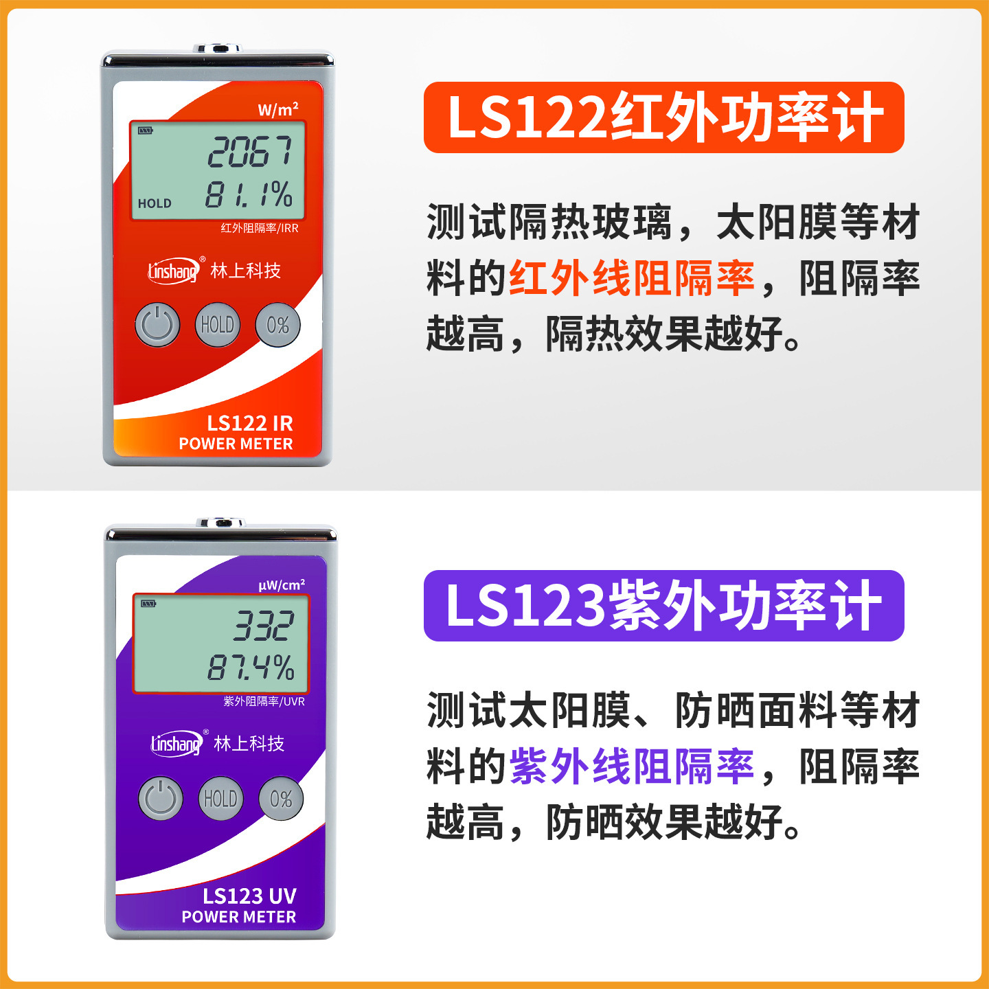 LS122红外功率计是一款具有宽光谱接收范围的仪器,主要用于材料的红外线阻隔率测量,适用于隔热玻璃,太阳膜等材料的隔热效果展示,演示效果直观易于理解。也可用于各种光源中红外线的辐射能功率密度测量,即每平方米的辐射能功率,单位是瓦/平方米(W/m²)。