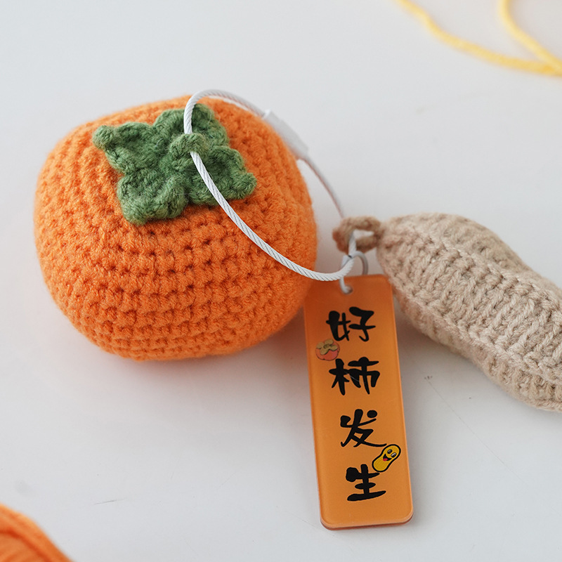 Хорошие вещи происходят, вязание крючком, материал «сделай сам», шерсть, вязание, хурма, арахис, брелок для пары, подарок на день рождения, подарок ручной работы