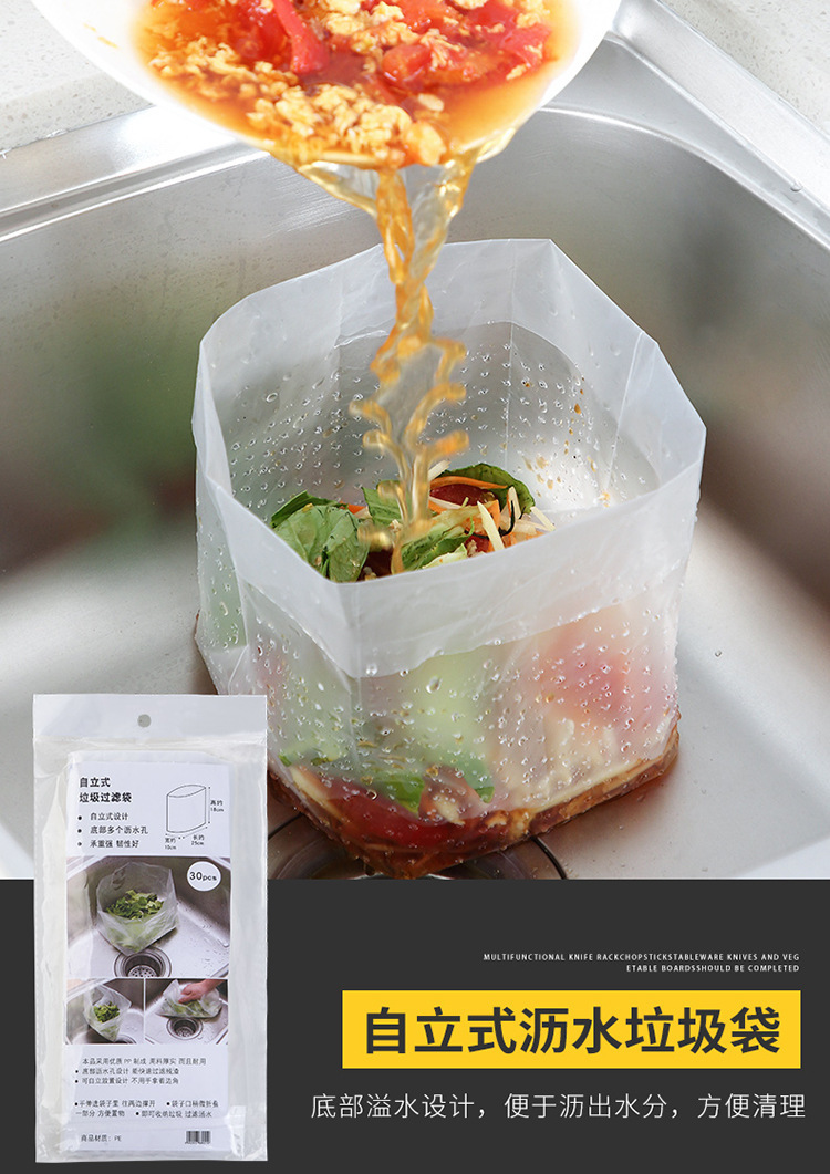30 упаковок кухонных вертикальных мешков для мусора для домашнего использования, утолщенная одноразовая сетка для фильтра для раковины, отдельно стоящие сливные мешки.