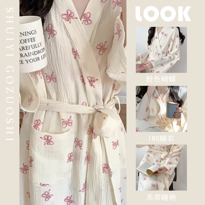 Новые весенние и осенние пижамы для женщин, простая и удобная ночная рубашка в корейском стиле с бантом, повседневная свободная домашняя одежда, летняя ночная рубашка