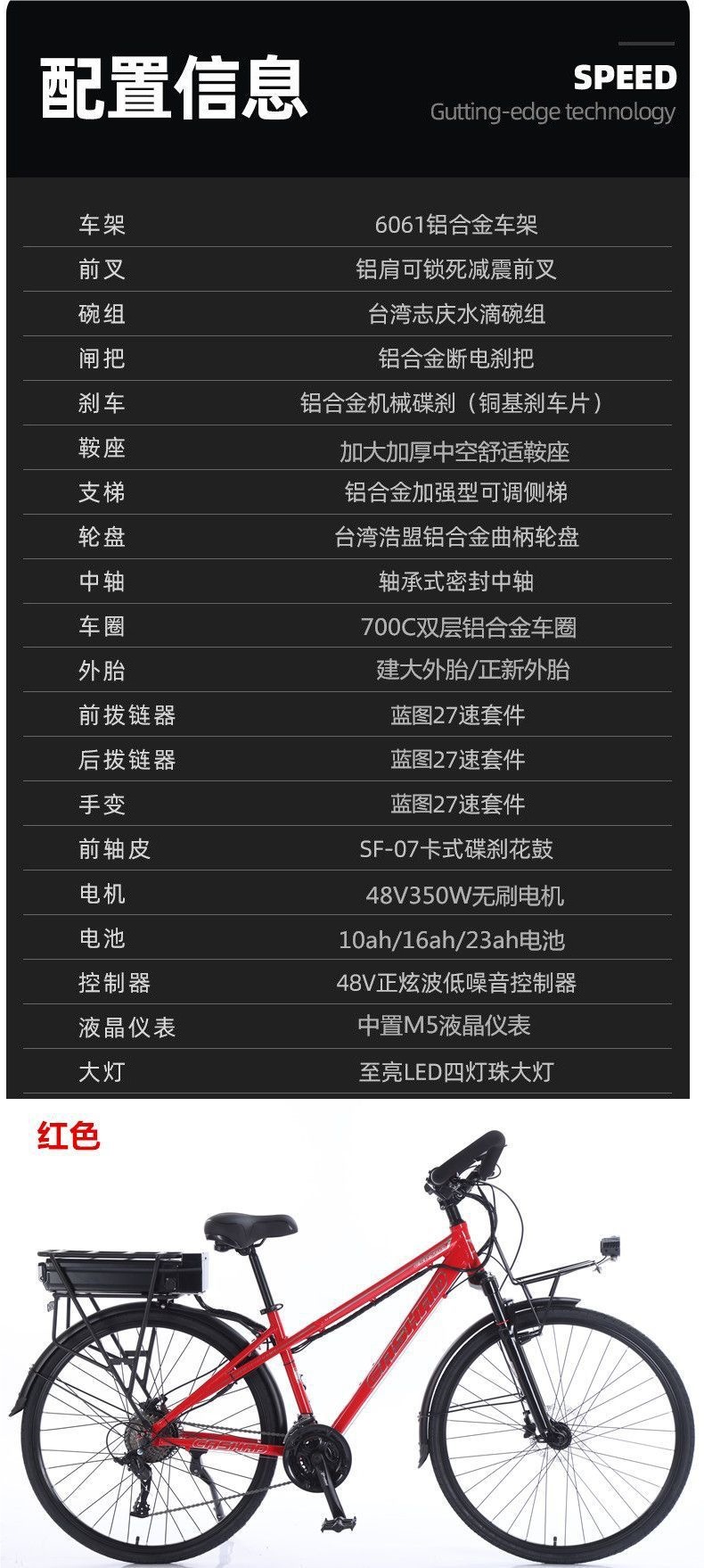 Литиевая батарея, автомобиль для путешествий, автомобиль для поездок на дальние расстояния, велосипед с электроприводом 700C, городской досуг, электромобиль, дисковый тормоз с переменной скоростью