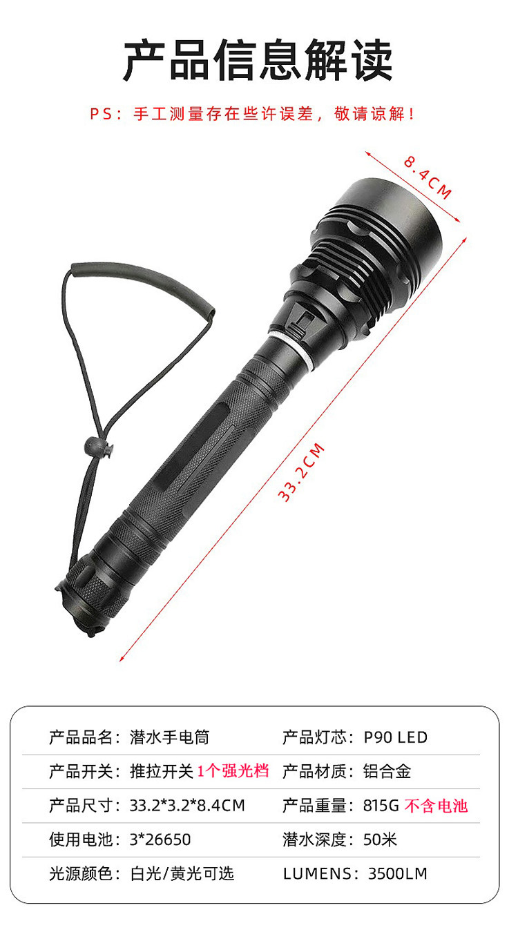 Мощный новый профессиональный фонарик для дайвинга P90 для морской рыбалки, сильный свет под водой, супер яркий и длительное время автономной работы.
